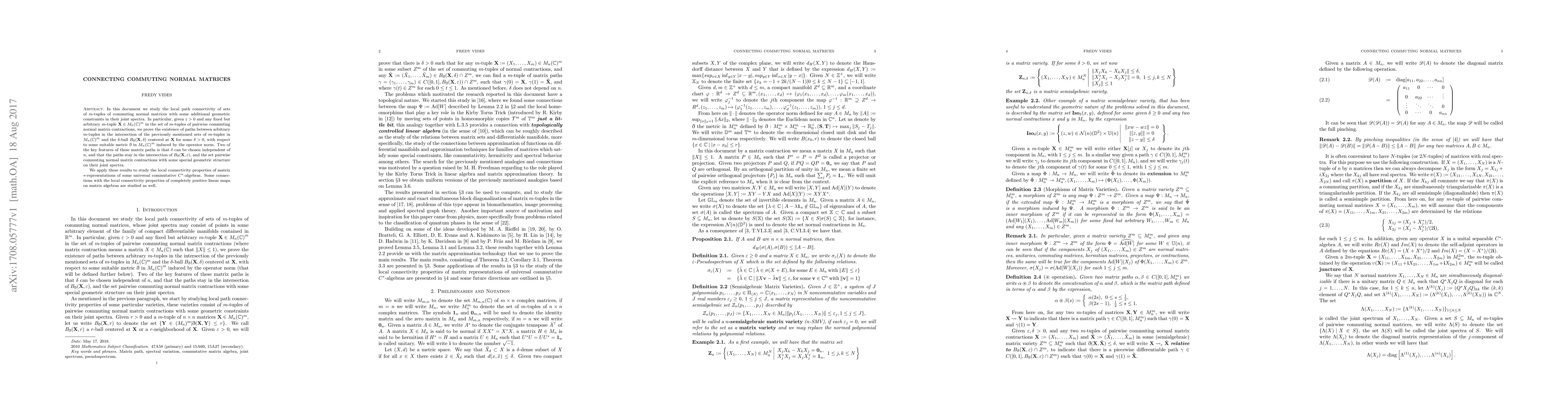 This research paper proves the existence of paths between arbitrary m-tuples of commuting normal matrices within a certain geometric constraint, showing local connectivity in matrix representations of universal commutative C*-algebras.