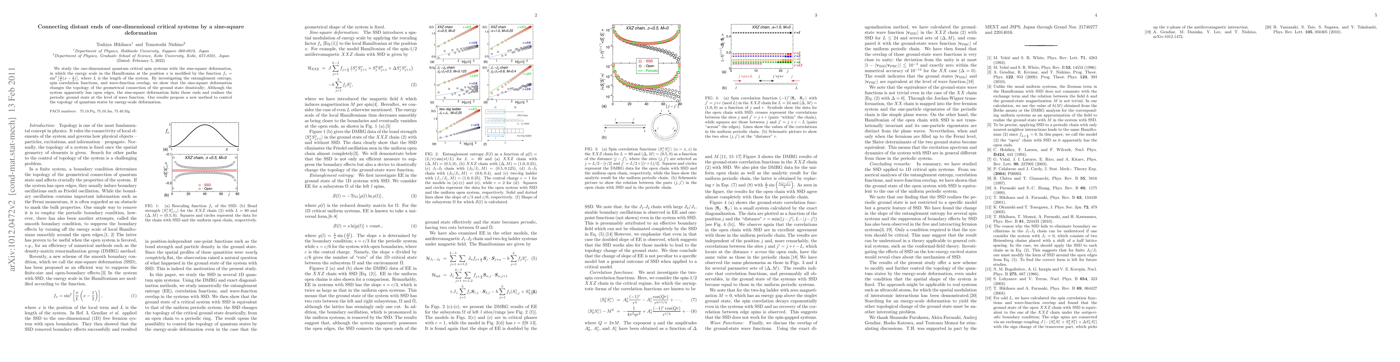 This paper investigates one-dimensional quantum critical spin systems with a sine-square deformation, demonstrating that it alters the topological connection of the ground state, linking open ends and realizing a periodic ground state at the wave-function level. The study proposes a novel method for controlling quantum state topology through energy-scale deformation.
