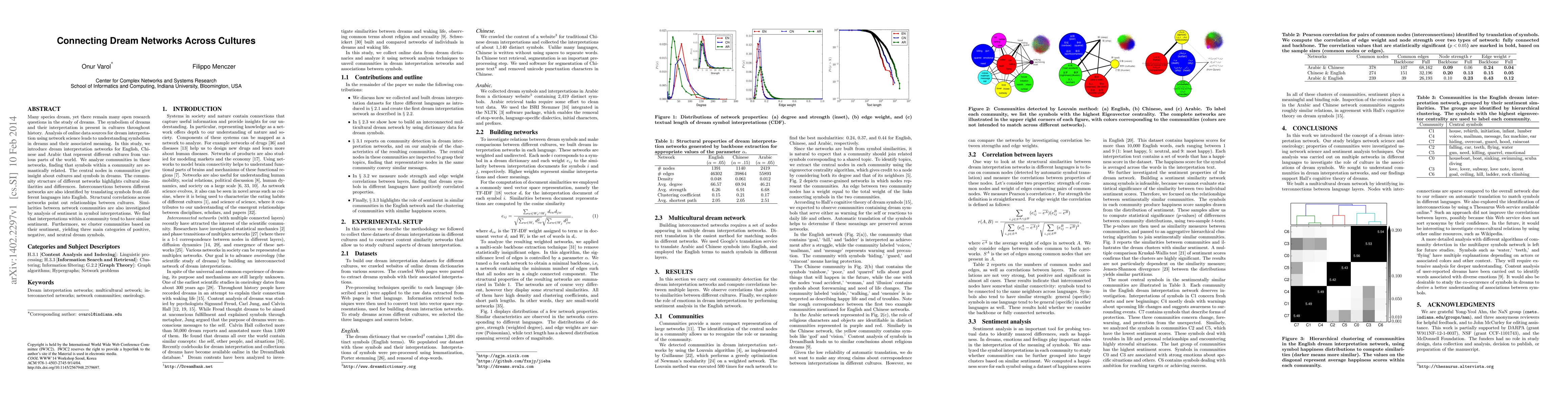 This study constructs dream interpretation networks for English, Chinese, and Arabic, revealing cultural similarities and differences through community structures and symbol sentiment. It identifies central nodes and interconnections, highlighting relationships between cultures and classifying symbols into positive, negative, and neutral categories based on sentiment analysis.