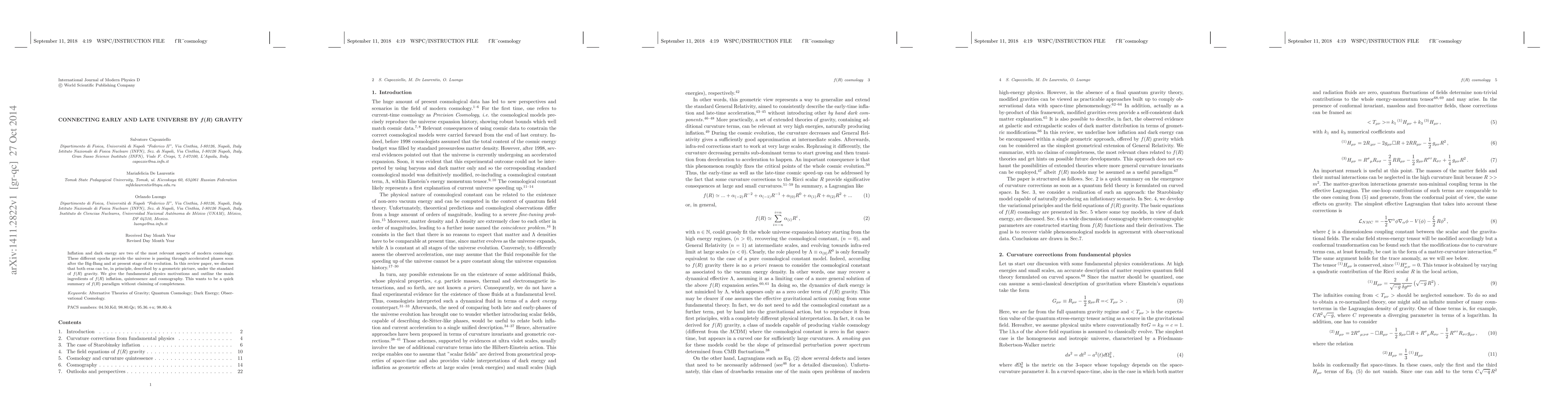 A study explores how $f(R)$ gravity can describe both inflationary and dark energy phases of the universe, offering a unified framework for understanding these two key aspects of modern cosmology.