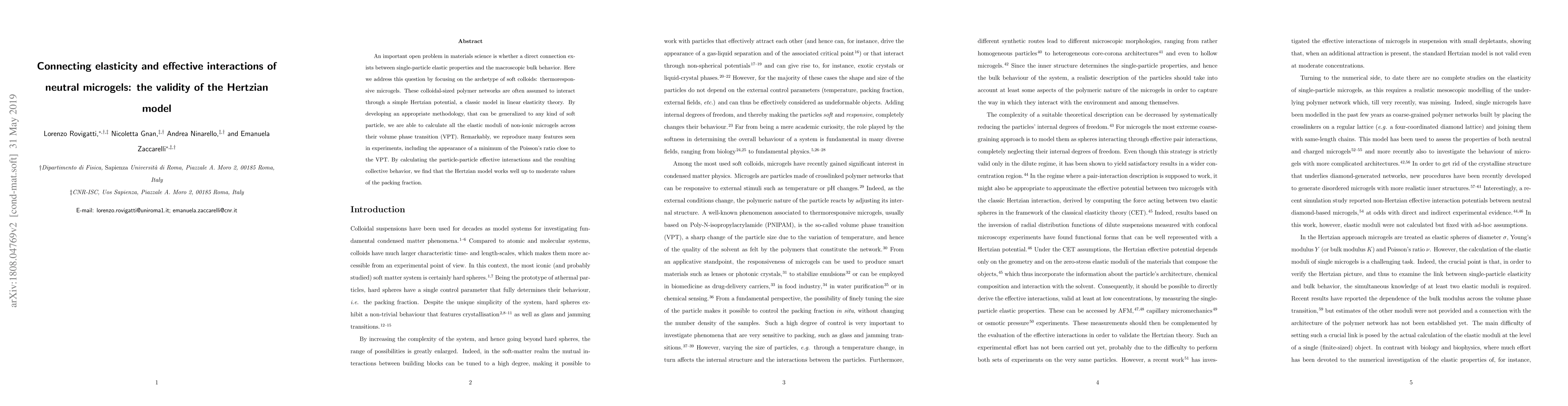 Researchers validate the Hertzian model for neutral microgels, finding it accurate up to moderate packing fractions, reproducing experimentally observed features like a Poisson's ratio minimum near the volume phase transition.