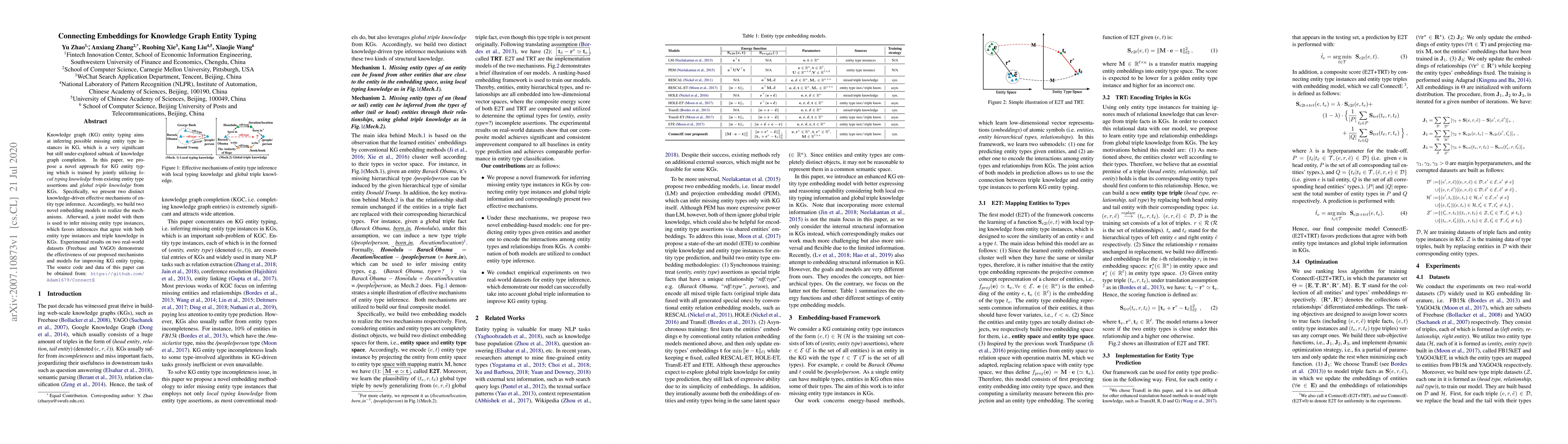 This paper proposes a novel approach for Knowledge Graph (KG) entity typing by leveraging both local typing knowledge and global triple knowledge. It introduces two embedding models and a joint model to infer missing entity types, demonstrating improved performance on Freebase and YAGO datasets. Source code and data available at https://github.com/Adam1679/ConnectE.