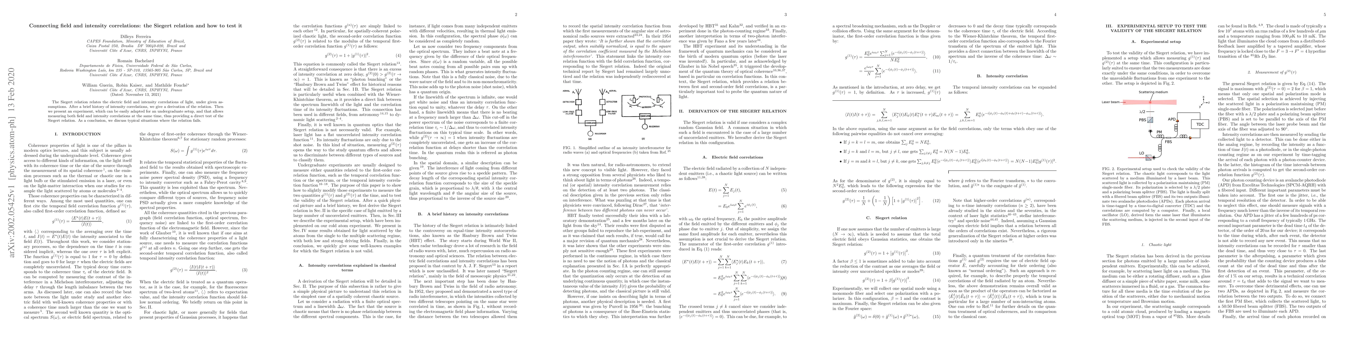 The Siegert relation relates the electric field and intensity correlations of light, under given assumptions. After a brief history of intensity correlations, we give a derivation of the relation. Then we present an experiment, which can be easily adapted for an undergraduate setup, and that allows measuring both field and intensity correlations at the same time, thus providing a direct test of the Siegert relation. As a conclusion, we discuss typical situations where the relation fails.