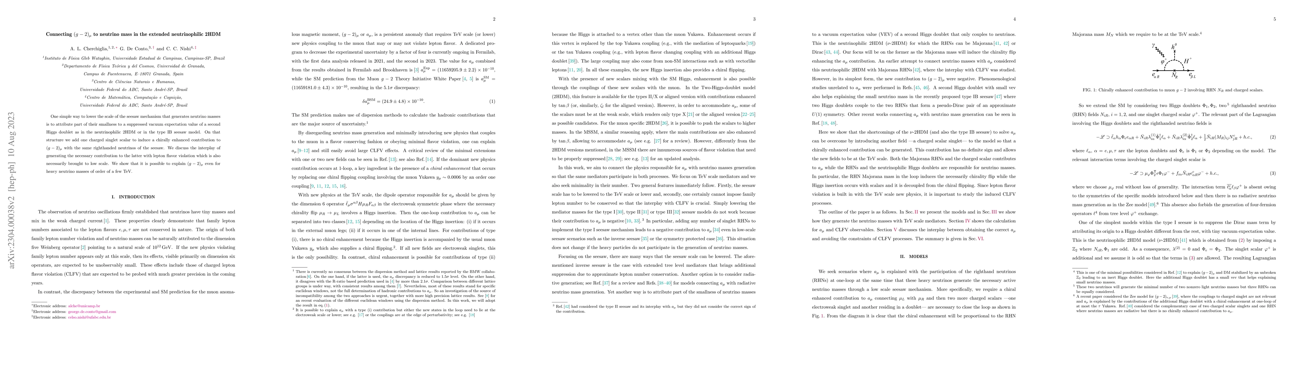 One simple way to lower the scale of the seesaw mechanism that generates neutrino masses is to attribute part of their smallness to a suppressed vacuum expectation value of a second Higgs doublet as in the neutrinophilic 2HDM or in the type IB seesaw model. On that structure we add one charged singlet scalar to induce a chirally enhanced contribution to $(g-2)_\mu$ with the same righthanded neutrinos of the seesaw. We discuss the interplay of generating the necessary contribution to the latter with lepton flavor violation which is also necessarily brought to low scale. We show that it is possible to explain $(g-2)_\mu$ even for heavy neutrino masses of order of a few TeV.