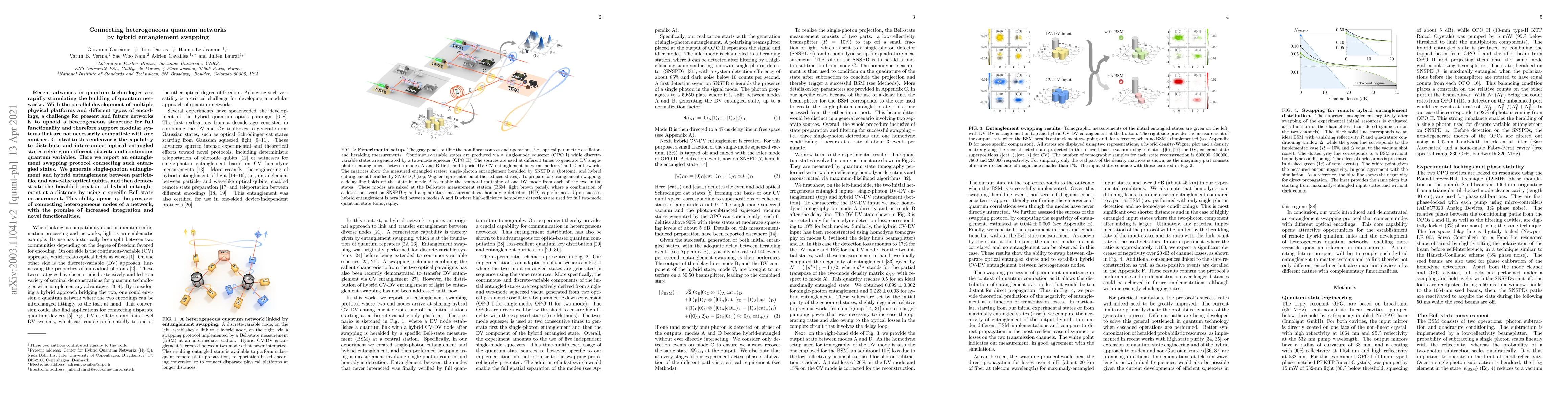 This paper presents a protocol for hybrid entanglement swapping to connect heterogeneous quantum networks, generating and interconnecting entangled states based on different quantum variables. The method demonstrates the ability to create hybrid entanglement over distances, promising enhanced integration and new functionalities in modular quantum networks.
