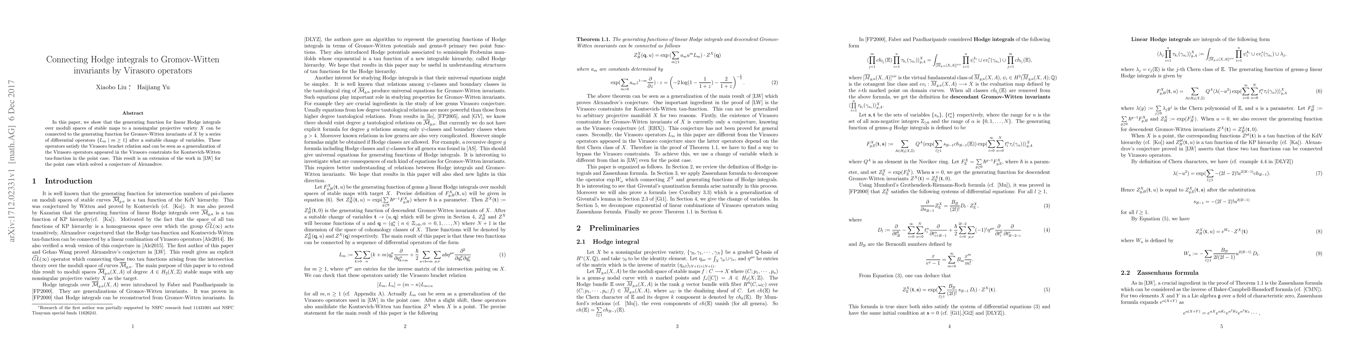 This paper establishes a connection between generating functions for Hodge integrals and Gromov-Witten invariants via a series of Virasoro operators satisfying the Virasoro bracket relation, extending prior work that addressed a conjecture by Alexandrov for the point case.