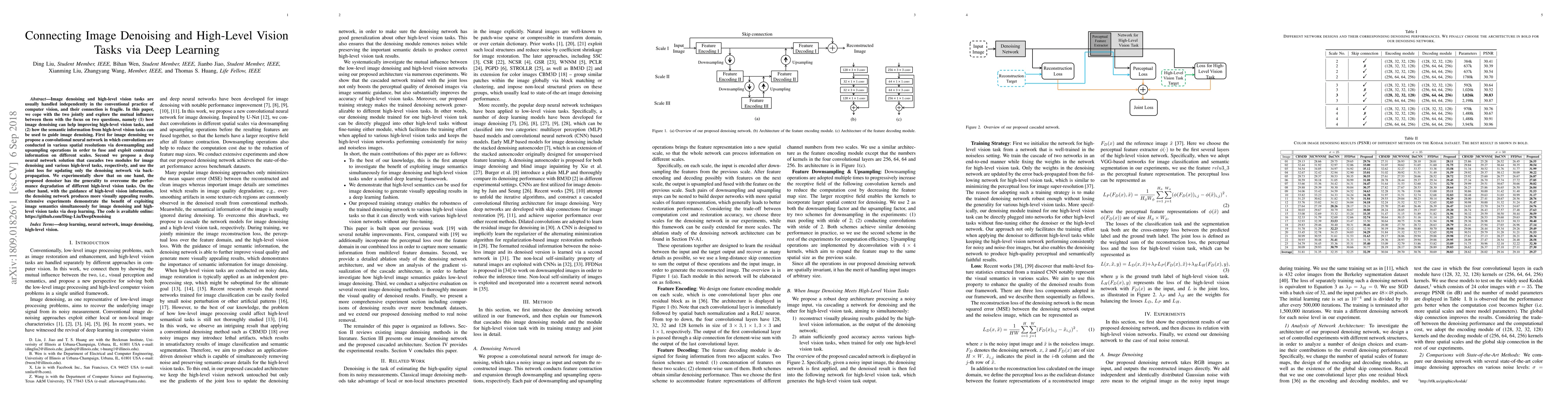This paper proposes a deep learning approach to jointly address image denoising and high-level vision tasks, demonstrating that denoising can improve high-level vision tasks and vice versa. The method uses a convolutional neural network for denoising and a cascading network with joint loss to optimize both tasks, showing improved performance and visually appealing results.