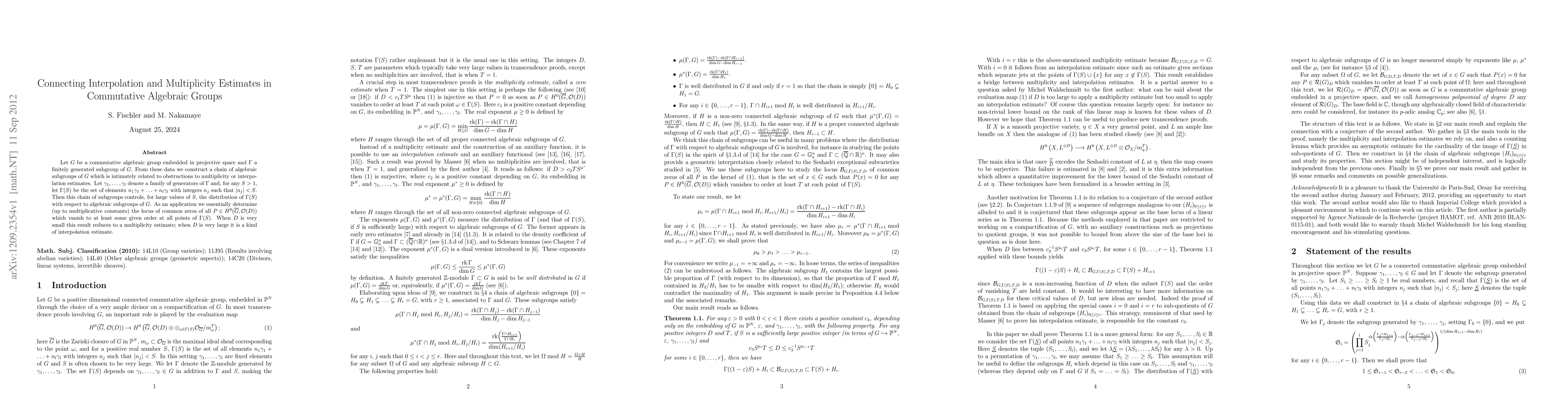 This research paper explores how a chain of algebraic subgroups relates to multiplicity and interpolation estimates in commutative algebraic groups, with implications for the study of common zeros of sheaf sections.