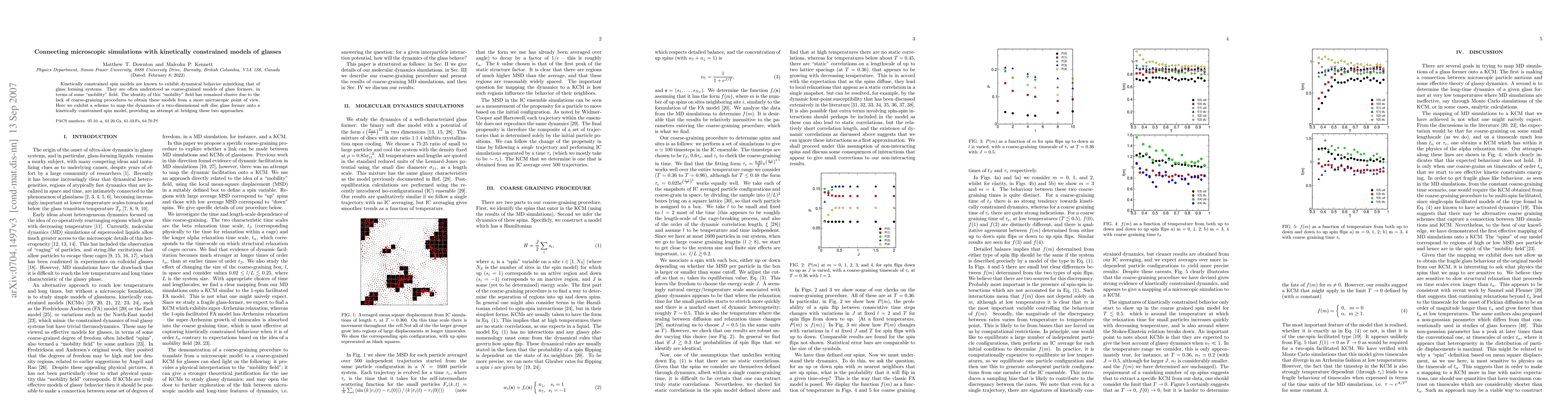This paper proposes a method to connect microscopic simulations of a two-dimensional soft disc glass former with kinetically constrained spin models, aiming to clarify the elusive "mobility" field that bridges these two approaches. The study seeks to provide a coarse-graining procedure to derive kinetically constrained models from a more detailed microscopic perspective.
