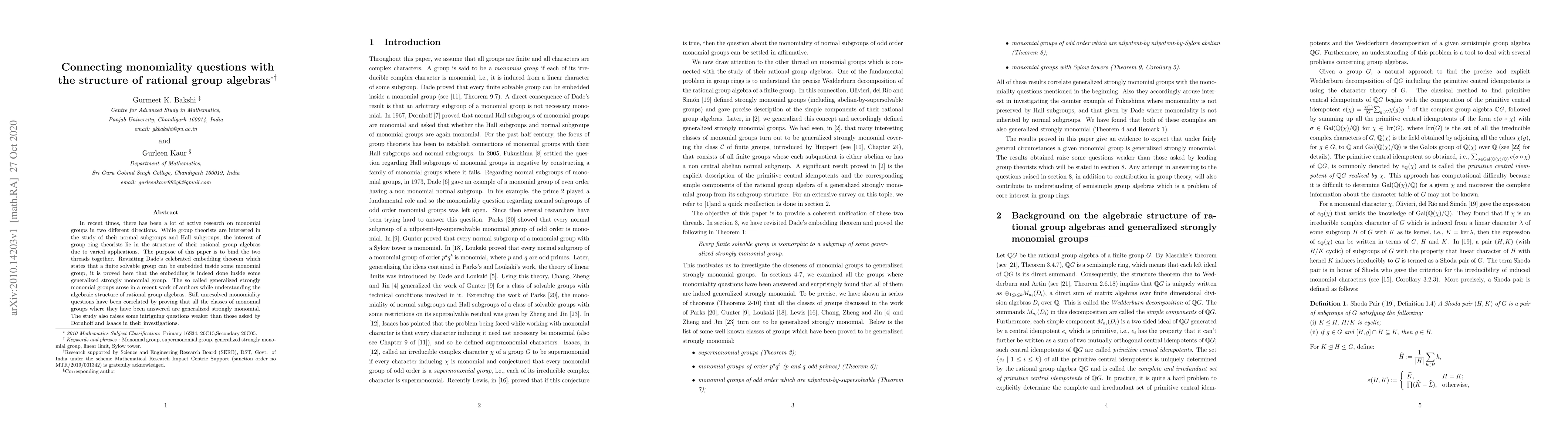 In recent times, there has been a lot of active research on monomial groups in two different directions. While group theorists are interested in the study of their normal subgroups and Hall subgroups, the interest of group ring theorists lie in the structure of their rational group algebras due to varied applications. The purpose of this paper is to bind the two threads together. Revisiting Dade's celebrated embedding theorem which states that a finite solvable group can be embedded inside some monomial group, it is proved here that the embedding is indeed done inside some generalized strongly monomial group. The so called generalized strongly monomial groups arose in a recent work of authors while understanding the algebraic structure of rational group algebras. Still unresolved monomiality questions have been correlated by proving that all the classes of monomial groups where they have been answered are generalized strongly monomial. The study also raises some intriguing questions weaker than those asked by Dornhoff and Isaacs in their investigations.