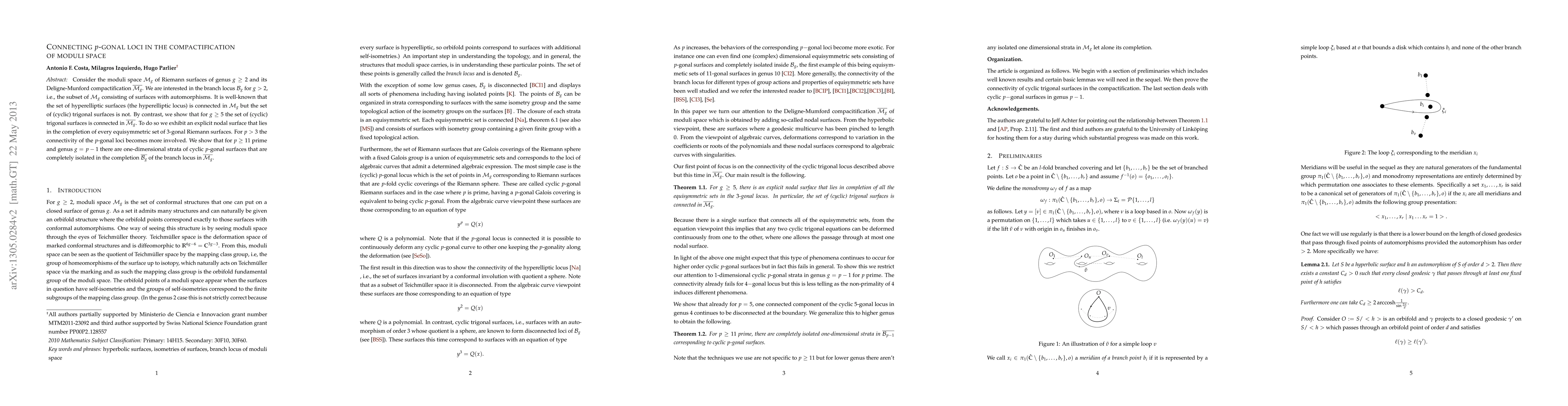 Consider the moduli space $\mathcal{M}_{g}$ of Riemann surfaces of genus $g\geq 2$ and its Deligne-Munford compactification $\bar{\mathcal{M}_{g}}$. We are interested in the branch locus ${\mathcal{B}_{g}}$ for $g>2$, i.e., the subset of $\mathcal{M}_{g}$ consisting of surfaces with automorphisms. It is well-known that the set of hyperelliptic surfaces (the hyperelliptic locus) is connected in $\mathcal{M}_{g}$ but the set of (cyclic) trigonal surfaces is not. By contrast, we show that for $g\geq 5$ the set of (cyclic) trigonal surfaces is connected in $\bar{\mathcal{M}_{g}}$. To do so we exhibit an explicit nodal surface that lies in the completion of every equisymmetric set of 3-gonal Riemann surfaces. For $p>3$ the connectivity of the $p$-gonal loci becomes more involved. We show that for $p\geq 11$ prime and genus $g=p-1$ there are one-dimensional strata of cyclic $p$-gonal surfaces that are completely isolated in the completion $\bar{\mathcal{B}_{g}}$ of the branch locus in $\bar{\mathcal{M}_{g}}$.