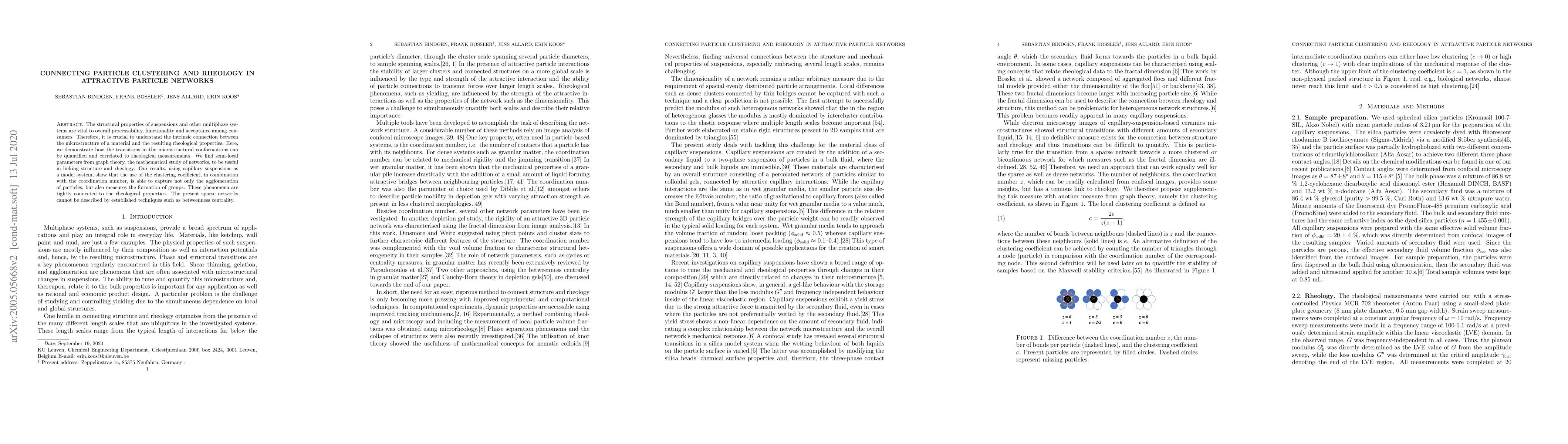 The structural properties of suspensions and other multiphase systems are vital to overall processability, functionality and acceptance among consumers. Therefore, it is crucial to understand the intrinsic connection between the microstructure of a material and the resulting rheological properties. Here, we demonstrate how the transitions in the microstructural conformations can be quantified and correlated to rheological measurements. We find semi-local parameters from graph theory, the mathematical study of networks, to be useful in linking structure and rheology. Our results, using capillary suspensions as a model system, show that the use of the clustering coefficient, in combination with the coordination number, is able to capture not only the agglomeration of particles, but also measures the formation of groups. These phenomena are tightly connected to the rheological properties. The present sparse networks cannot be described by established techniques such as betweenness centrality.
