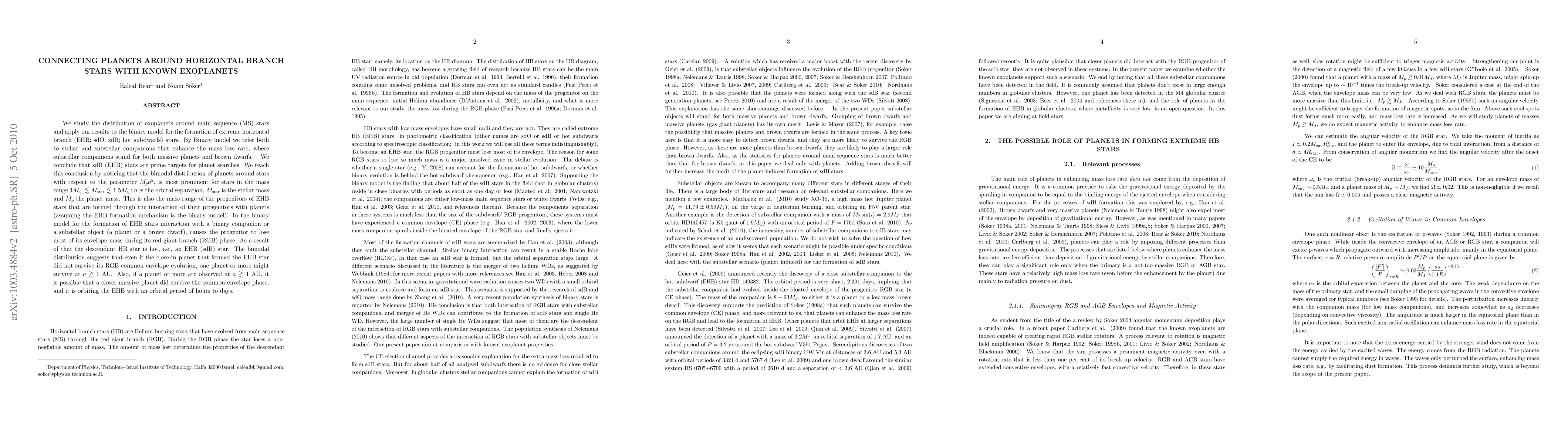 This research investigates the distribution of exoplanets around main sequence stars and suggests that sdB (extreme horizontal branch) stars, formed through binary interactions, are prime targets for planet searches. The study finds that a bimodal distribution of planets is most evident in the mass range of progenitor stars leading to EHB stars, indicating potential surviving planets at greater orbital distances.