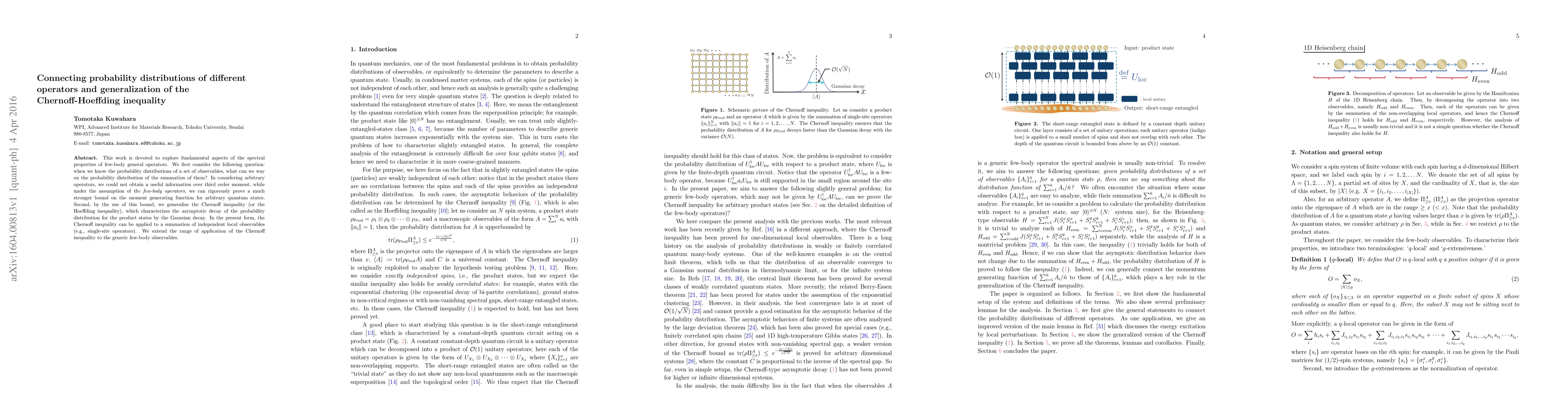 This work is devoted to explore fundamental aspects of the spectral properties of few-body general operators. We first consider the following question: when we know the probability distributions of a set of observables, what can we way on the probability distribution of the summation of them? In considering arbitrary operators, we could not obtain a useful information over third order moment, while under the assumption of the few-body operators, we can rigorously prove a much stronger bound on the moment generating function for arbitrary quantum states. Second, by the use of this bound, we generalize the Chernoff inequality (or the Hoeffding inequality), which characterizes the asymptotic decay of the probability distribution for the product states by the Gaussian decay. In the present form, the Chernoff inequality can be applied to a summation of independent local observables (e.g., single-site operators). We extend the range of application of the Chernoff inequality to the generic few-body observables.