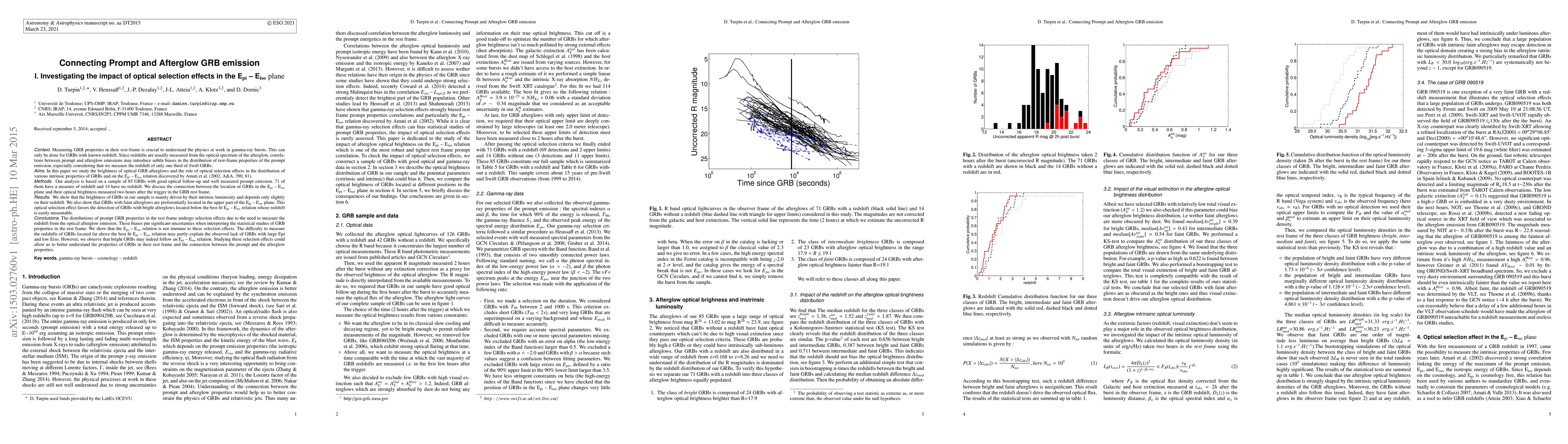This paper investigates how optical selection effects influence the distribution of gamma-ray burst (GRB) properties in the Epi-Eiso plane, finding that GRBs with brighter afterglows are more likely to have measurable redshifts. It concludes that selection biases from optical afterglow brightness introduce uncertainties in interpreting GRB statistical studies.