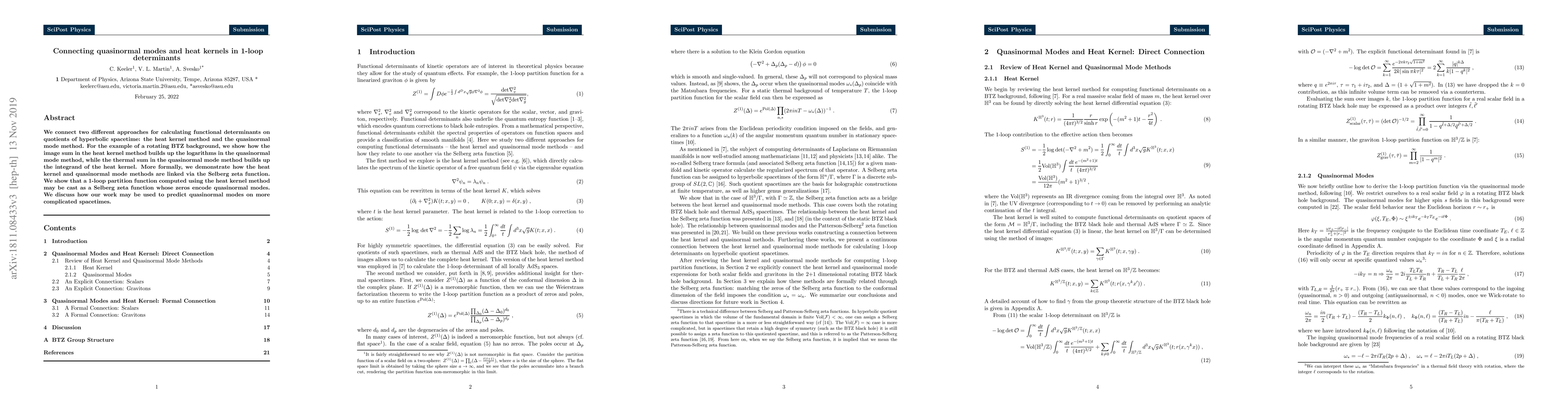 We connect two different approaches for calculating functional determinants on quotients of hyperbolic spacetime: the heat kernel method and the quasinormal mode method. For the example of a rotating BTZ background, we show how the image sum in the heat kernel method builds up the logarithms in the quasinormal mode method, while the thermal sum in the quasinormal mode method builds up the integrand of the heat kernel. More formally, we demonstrate how the heat kernel and quasinormal mode methods are linked via the Selberg zeta function. We show that a 1-loop partition function computed using the heat kernel method may be cast as a Selberg zeta function whose zeros encode quasinormal modes. We discuss how our work may be used to predict quasinormal modes on more complicated spacetimes.