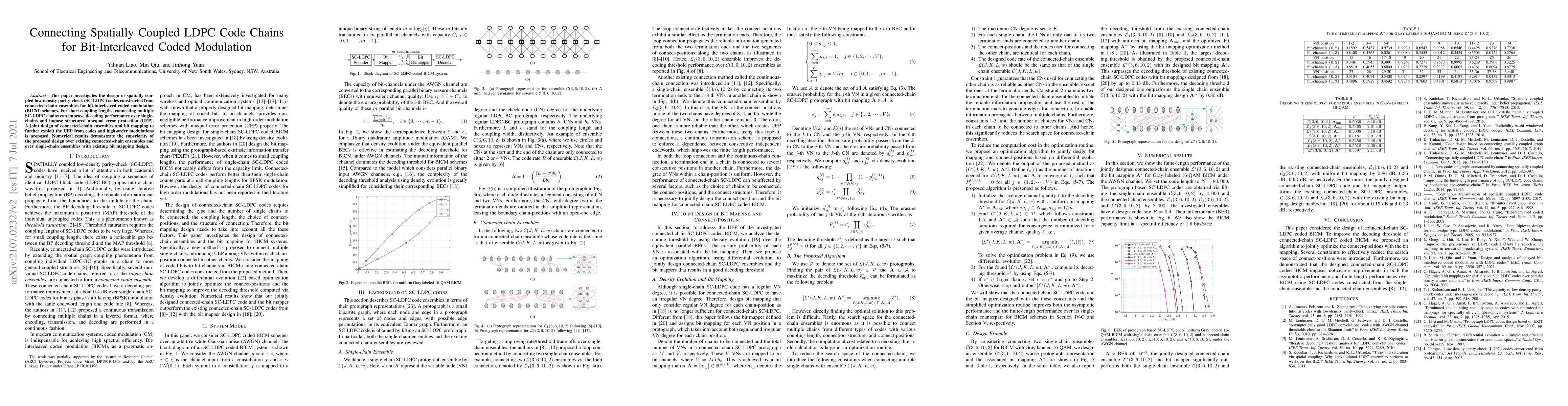 This paper proposes a design for spatially coupled low-density parity-check (SC-LDPC) codes using connected-chain ensembles for bit-interleaved coded modulation (BICM) schemes, showing improved decoding performance and structured unequal error protection (UEP). Numerical results indicate superior performance compared to existing designs.
