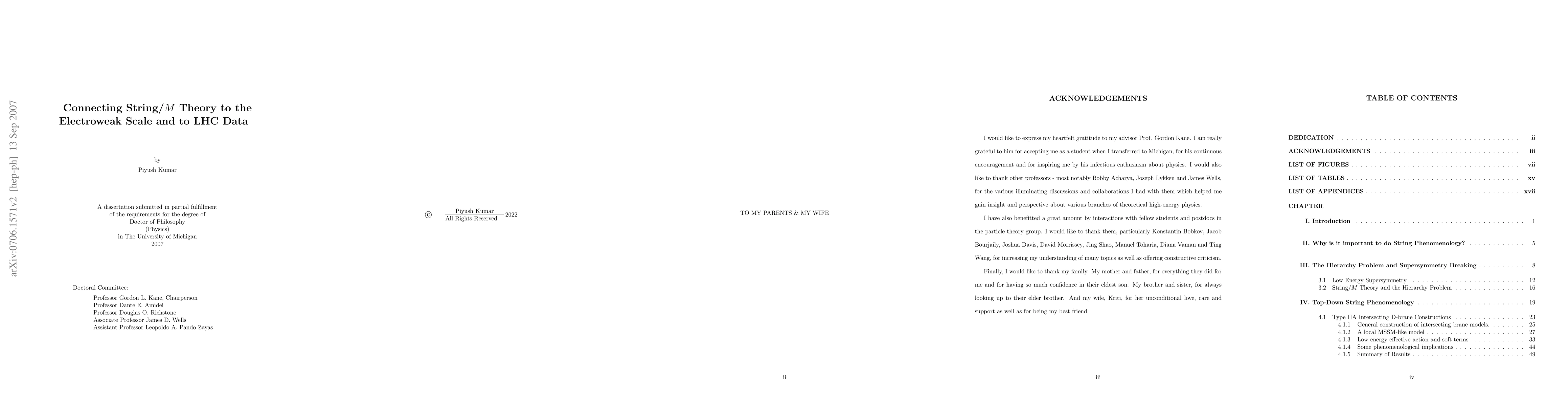 The Standard Model of particle physics explains (almost) all observed non-gravitational microscopic phenomena but has many open theoretical questions. We are on the threshold of unraveling the mysteries of the Standard Model and discovering its extension. This could be achieved in the near future with the help of many experiments in particle physics and cosmology, the LHC in particular. Assuming that data confirming the existence of new physics beyond the Standard Model is obtained, one is left with the very important and challenging task of solving the "Inverse Problem", \emph{viz.} "How can one deduce the nature of the underlying (perhaps microscopic) theory from data?" This thesis explores this question in detail, and also proposes an approach to address the problem in a meaningful way which could prove crucial to the possible solution to this problem in the future. The proposed approach has three aspects - a) To systematically study classes of microscopic (string/$M$ theory) constructions to the extent that they could be connected to low energy physics (electroweak scale), b) To find patterns of experimental observables which are sensitive to the properties of the underlying theoretical constructions thereby allowing us to distinguish among different constructions, and c) To try to get insights about the qualitative features of the theoretical model from data in a bottom-up approach which complements the top-down approach and strengthens it as well. This thesis studies all the above aspects in detail. The methods used and results obtained in this thesis will hopefully be of great importance in solving the Inverse Problem.