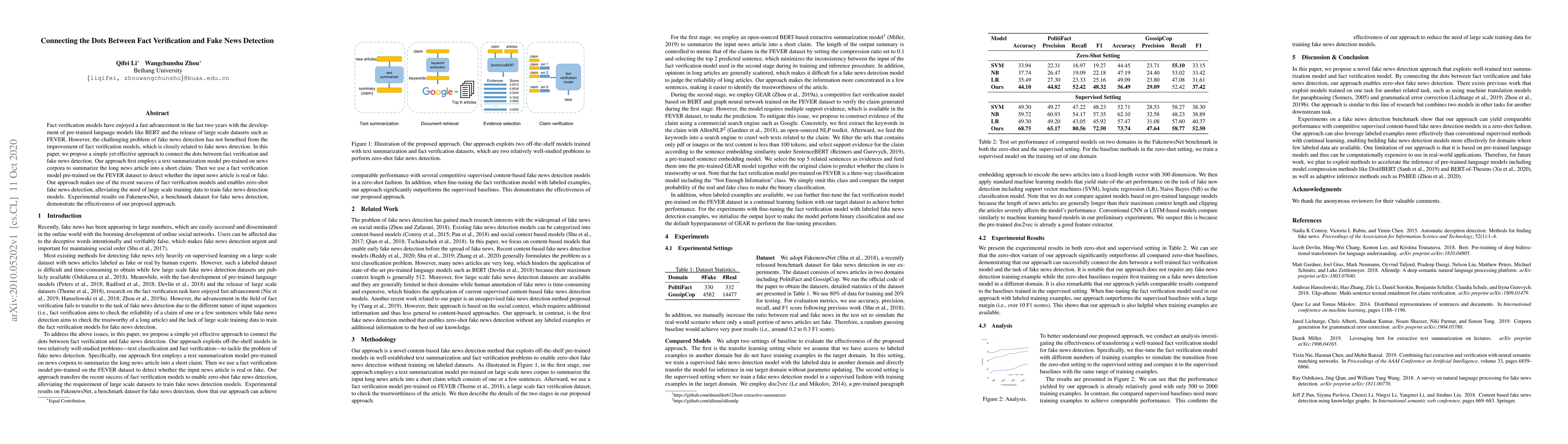 This paper proposes a method to bridge fact verification and fake news detection by summarizing long news articles into short claims using a text summarization model, followed by fact verification to determine the authenticity of the article, achieving effective zero-shot fake news detection without extensive training data. Experimental results show its success on the FakenewsNet dataset.