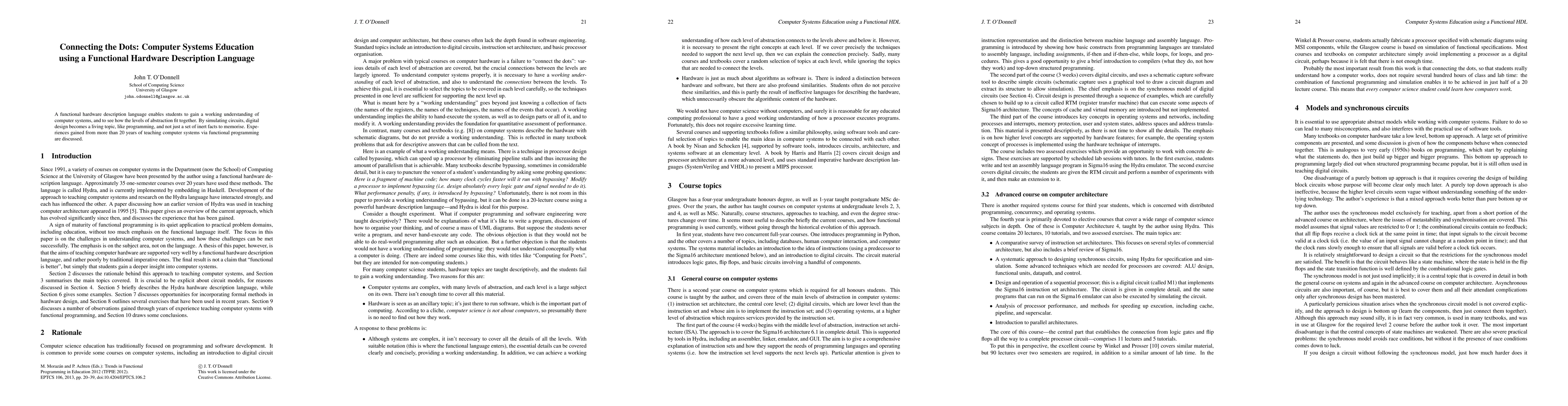 This paper explores using a functional hardware description language to teach computer systems, emphasizing how simulations make digital design engaging. The author shares insights from over two decades of experience in this educational approach.