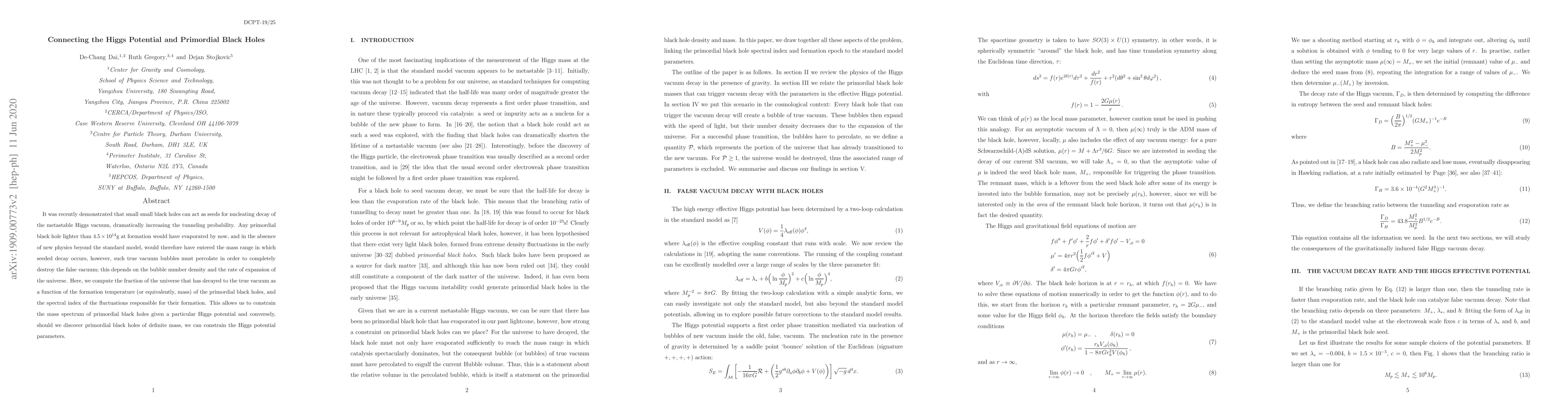 This paper explores the relationship between primordial black holes and the decay of the metastable Higgs vacuum, showing that small black holes can seed this decay. It calculates the fraction of the universe that has transitioned to the true vacuum based on the mass of primordial black holes and the spectral index of the fluctuations, thereby constraining the mass spectrum of these black holes and the Higgs potential parameters.