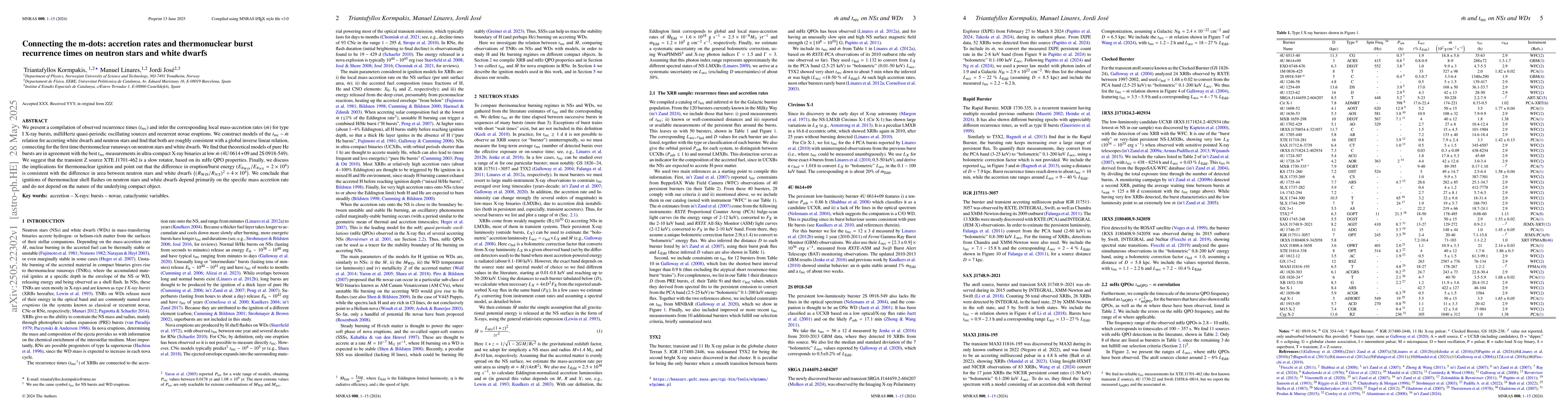 This work is novel in connecting thermonuclear burst recurrence times and mass accretion rates for both neutron stars and white dwarfs, suggesting a universal relationship independent of the compact object nature.
