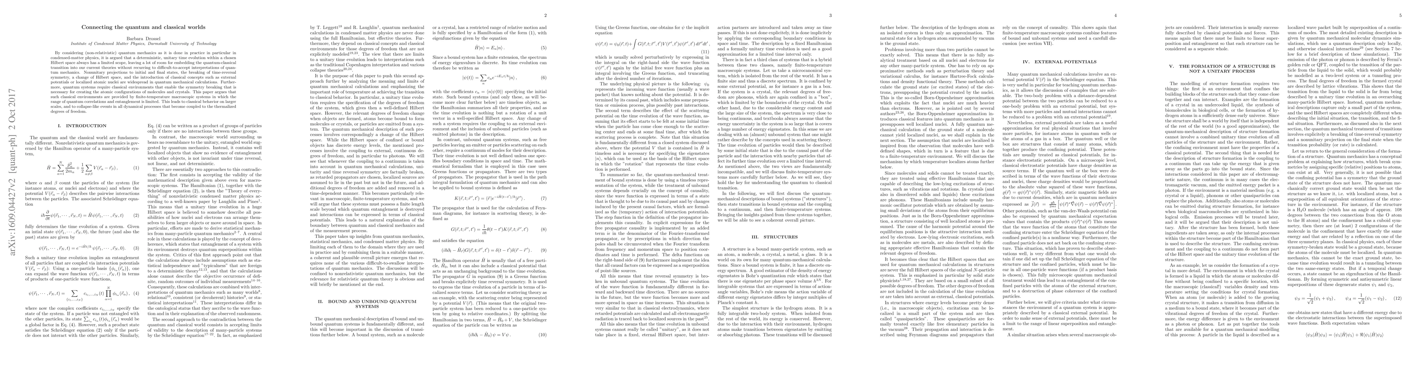 By considering (non-relativistic) quantum mechanics as it is done in practice in particular in condensed-matter physics, it is argued that a deterministic, unitary time evolution within a chosen Hilbert space always has a limited scope, leaving a lot of room for embedding the quantum-classical transition into our current theories without recurring to difficult-to-accept interpretations of quantum mechanics. Nonunitary projections to initial and final states, the breaking of time-reversal symmetry, a change of Hilbert space, and the introduction of classical concepts such as external potentials or localized atomic nuclei are widespread in quantum mechanical calculations. Furthermore, quantum systems require classical environments that enable the symmetry breaking that is necessary for creating the atomic configurations of molecules and crystals. This paper argues that such classical environments are provided by finite-temperature macroscopic systems in which the range of quantum correlations and entanglement is limited. This leads to classical behavior on larger scales, and to collapse-like events in all dynamical processes that become coupled to the thermalized degrees of freedom.