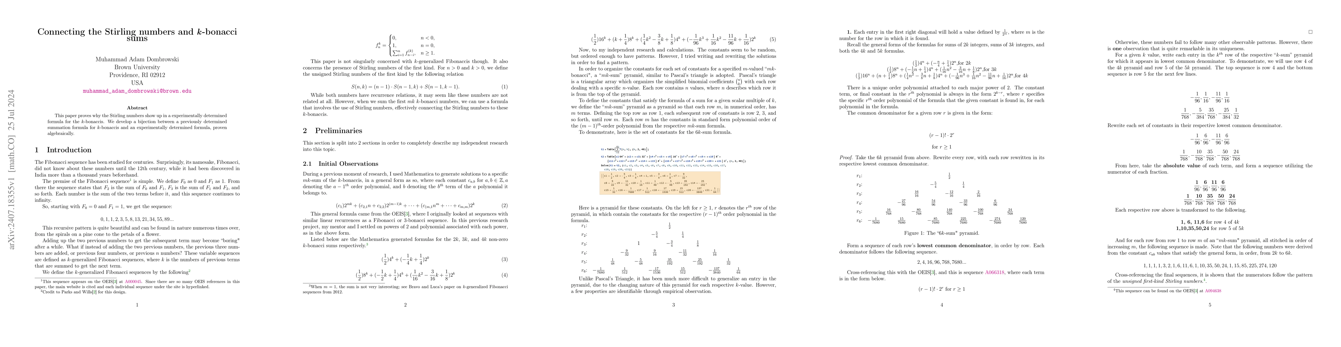 The research used a combination of mathematical derivations and empirical observations to establish a connection between Stirling numbers and k-Bonacci sums.