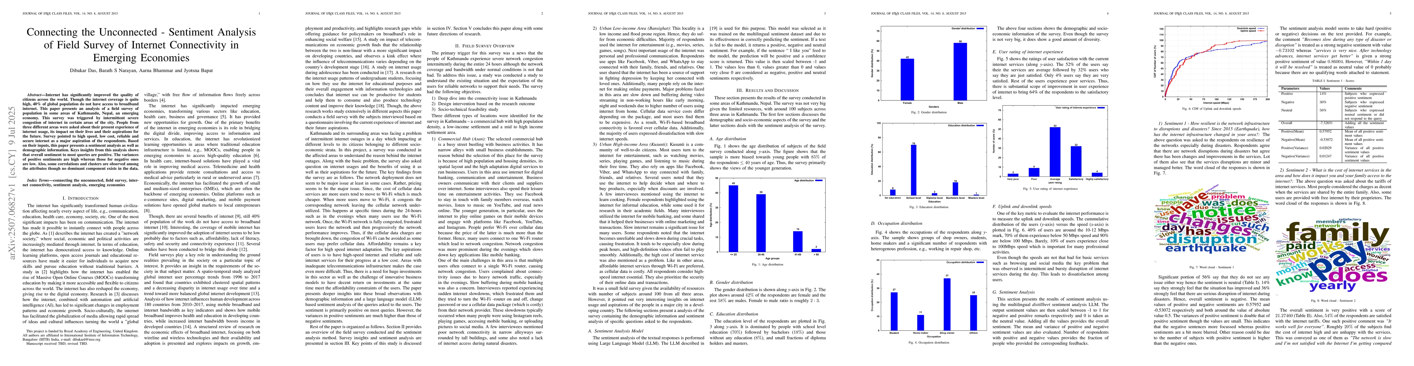 Internet has significantly improved the quality of citizens across the world. Though the internet coverage is quite high, 40% of global population do not have access to broadband internet. This paper presents an analysis of a field survey of population in some areas of Kathmandu, Nepal, an emerging economy. This survey was triggered by intermittent severe congestion of internet in certain areas of the city. People from three different areas were asked about their present experience of internet usage, its impact on their lives and their aspirations for the future. Survey pointed to high speed, low cost, reliable and secure internet as a major aspiration of the respondents. Based on their inputs, this paper presents a sentiment analysis as well as demographic information. Keys insights from this analysis shows that overall sentiment to most queries are positive. The variances of positive sentiments are high whereas those for negative ones are low. Also, some correlations and clusters are observed among the attributes though no dominant component exists in the data.