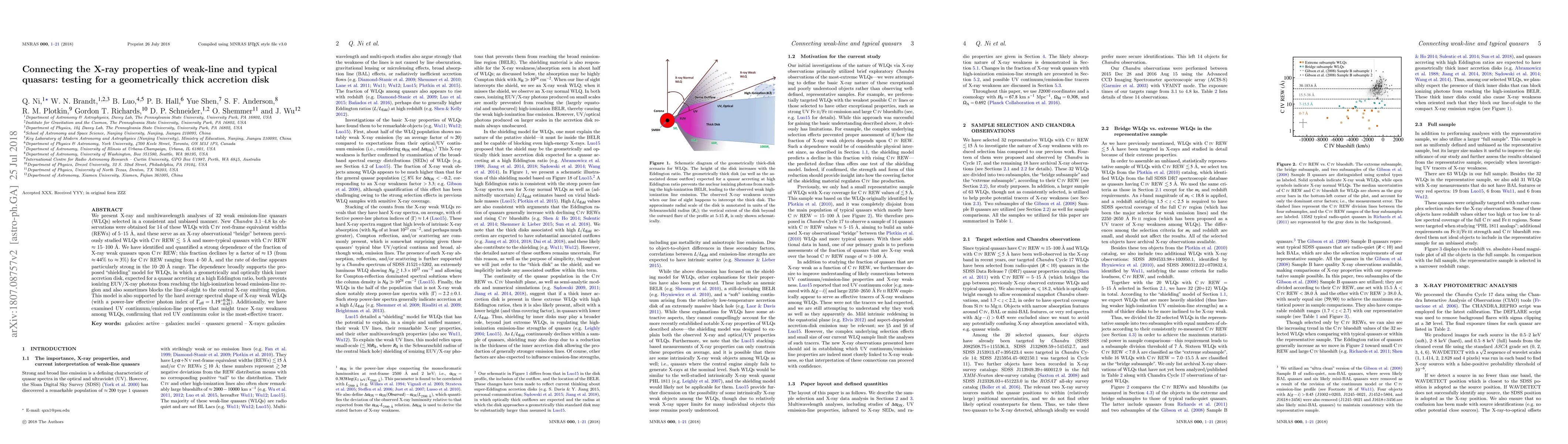 This study analyzes X-ray and multiwavelength properties of 32 weak emission-line quasars (WLQs), finding a strong decline in the fraction of X-ray weak quasars with increasing C IV equivalent width, supporting the "shielding" model of WLQs due to a geometrically thick accretion disk. Red UV continuum color is identified as the most effective tracer of X-ray weakness among WLQs.
