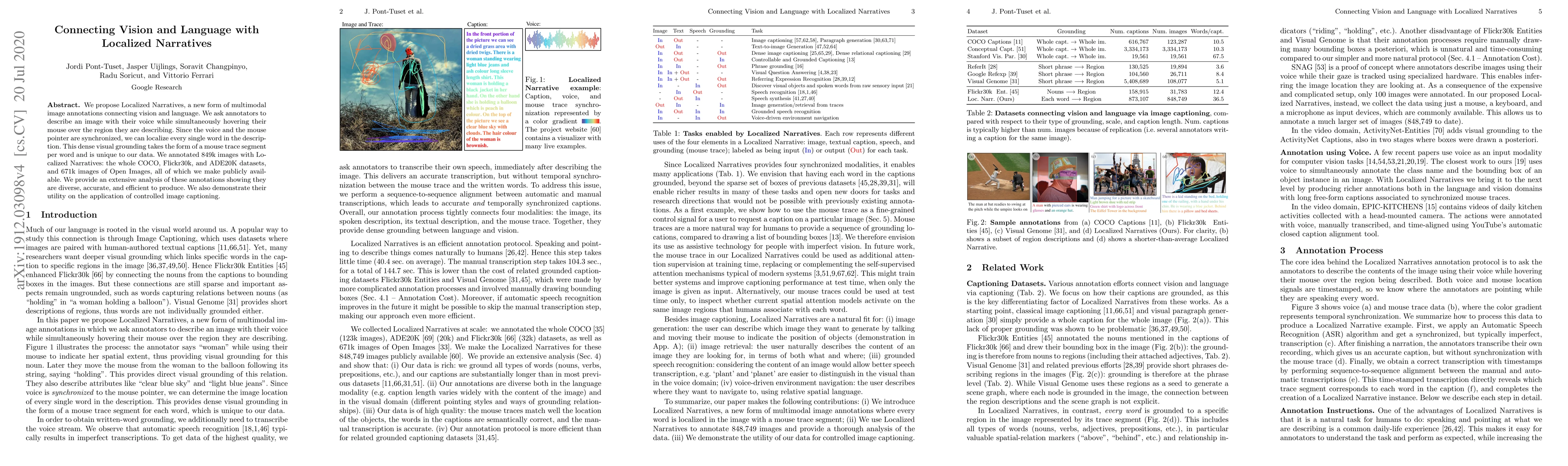 Researchers introduce Localized Narratives, a method to connect image descriptions with precise mouse movements, enabling accurate and efficient multimodal annotations for visual grounding. This approach is demonstrated on large datasets and shows promise for improving controlled image captioning.