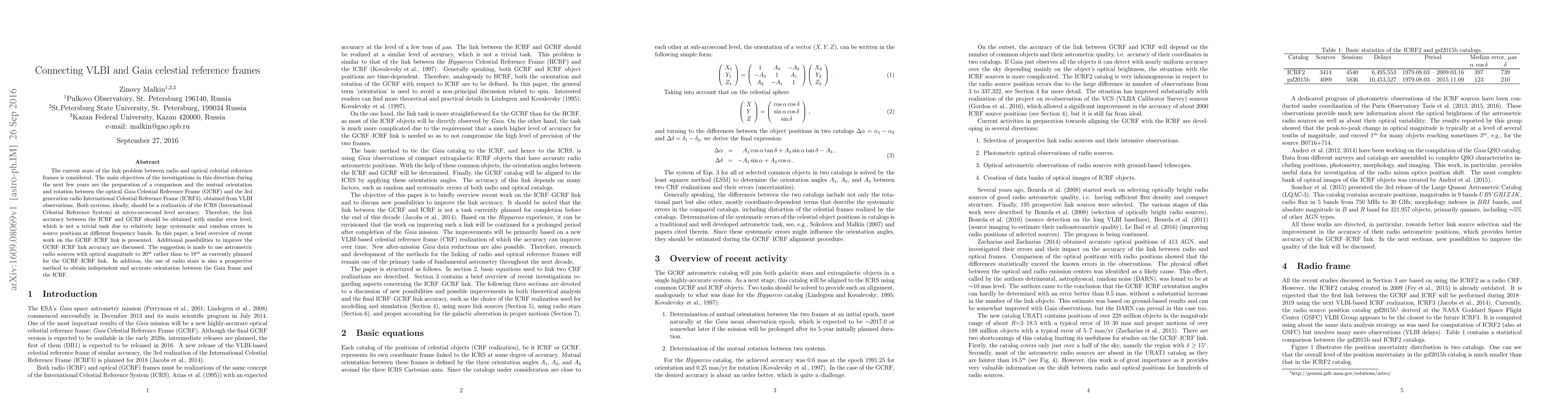 This paper discusses the challenges in linking the Gaia Celestial Reference Frame (GCRF) with the 3rd generation radio International Celestial Reference Frame (ICRF3) obtained from VLBI observations, aiming for micro-arcsecond accuracy. It proposes using brighter astrometric radio sources and radio stars to improve the link accuracy between these celestial reference frames.