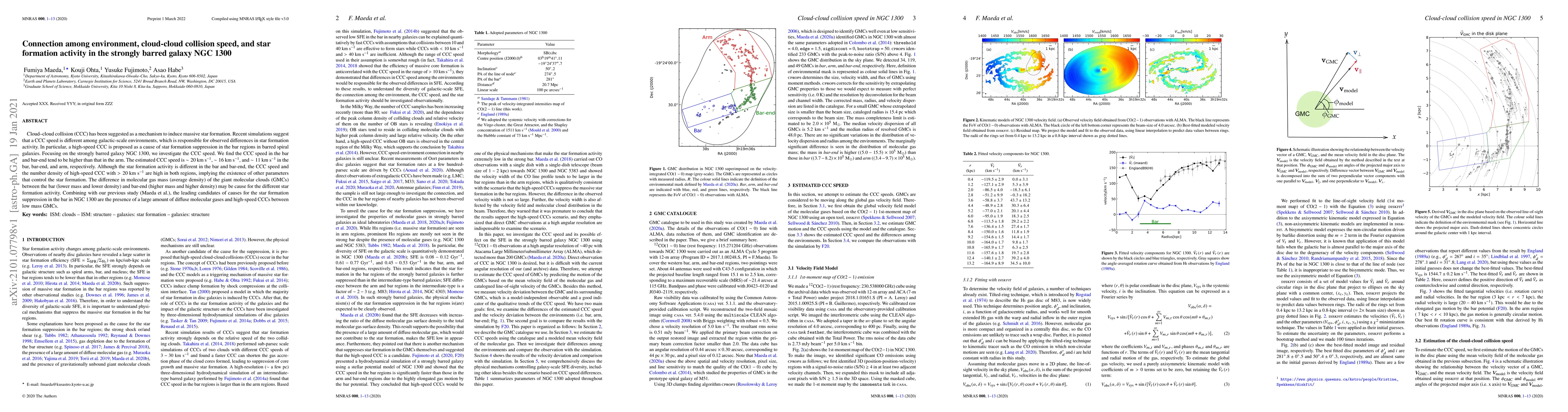 This study investigates the cloud-cloud collision (CCC) speed in NGC1300, finding higher speeds in the bar and bar-end compared to the arm, which correlates with suppressed star formation despite high-speed CCCs. The difference in molecular gas mass and density between the bar and bar-end suggests additional factors beyond CCC speed influence star formation activity.