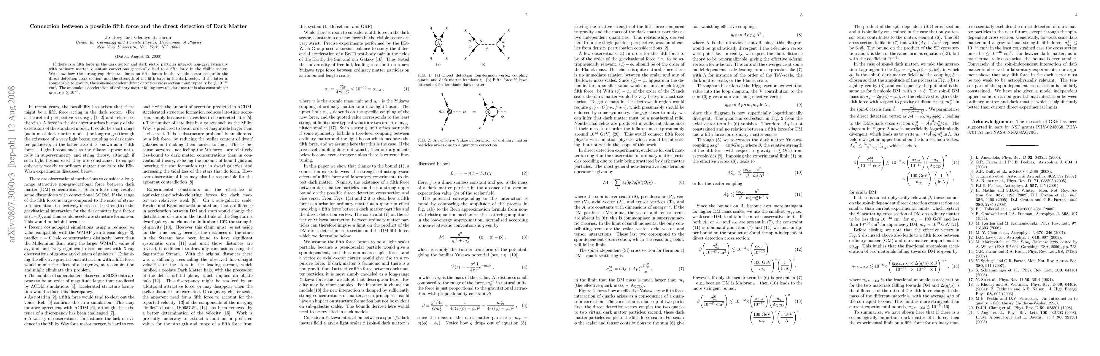 The paper presents a detailed analysis linking experimental constraints on fifth forces in the visible sector to direct dark matter detection cross sections, highlighting the interplay between astrophysical and laboratory constraints on dark sector physics.