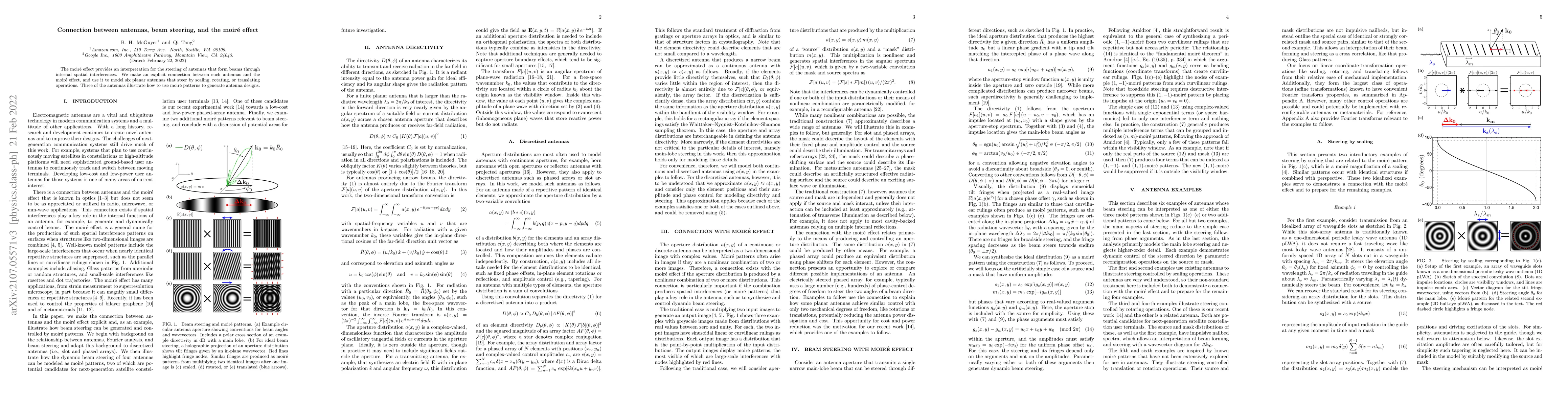 This paper explores the moiré effect as an explanation for beam steering in antennas through internal spatial interferences, demonstrating its application in designing six planar antennas that steer via scaling, rotation, or translation, with three examples utilizing moiré patterns.