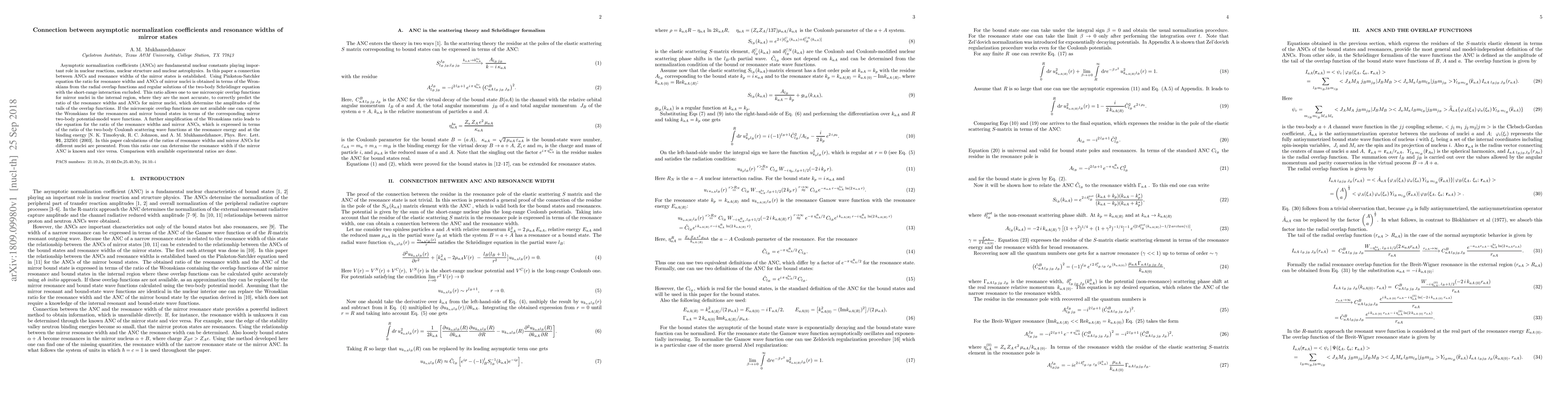 This paper establishes a connection between asymptotic normalization coefficients (ANCs) and resonance widths of mirror states, using the Pinkston-Satchler equation to derive a ratio involving Wronskians from radial overlap functions. This ratio allows for the prediction of resonance widths and ANCs in mirror nuclei, facilitating the determination of resonance widths when mirror ANCs are known, and vice versa.