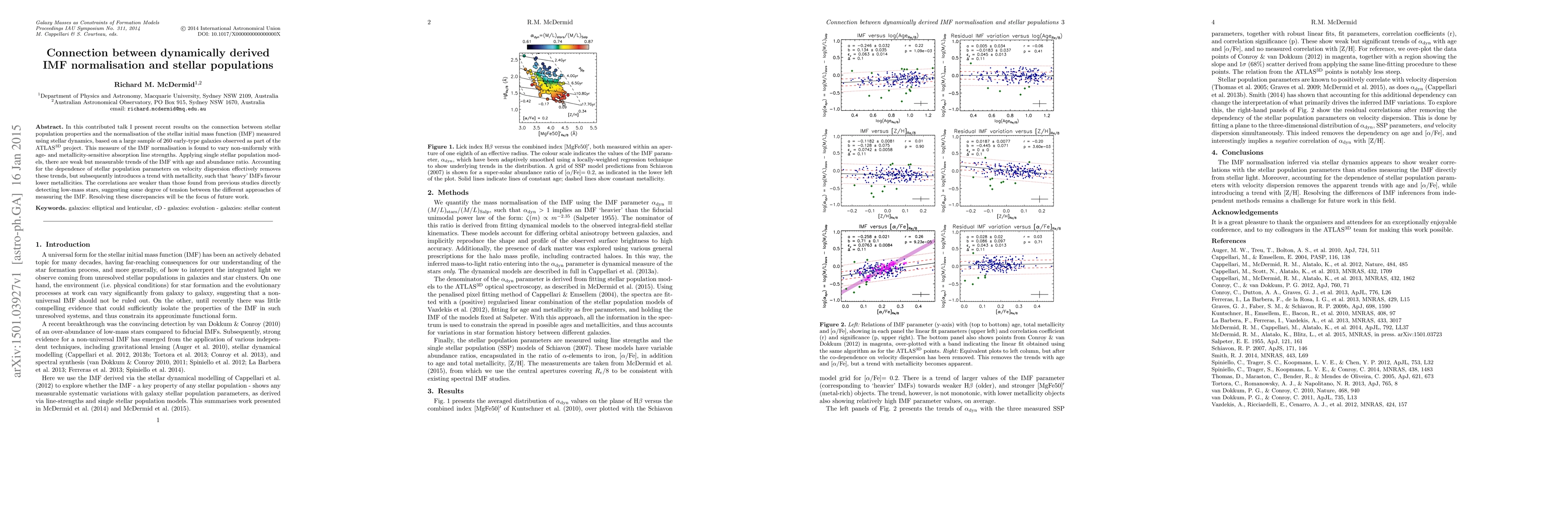 In this contributed talk I present recent results on the connection between stellar population properties and the normalisation of the stellar initial mass function (IMF) measured using stellar dynamics, based on a large sample of 260 early-type galaxies observed as part of the Atlas3D project. This measure of the IMF normalisation is found to vary non-uniformly with age- and metallicity-sensitive absorption line strengths. Applying single stellar population models, there are weak but measurable trends of the IMF with age and abundance ratio. Accounting for the dependence of stellar population parameters on velocity dispersion effectively removes these trends, but subsequently introduces a trend with metallicity, such that `heavy' IMFs favour lower metallicities. The correlations are weaker than those found from previous studies directly detecting low-mass stars, suggesting some degree of tension between the different approaches of measuring the IMF. Resolving these discrepancies will be the focus of future work.