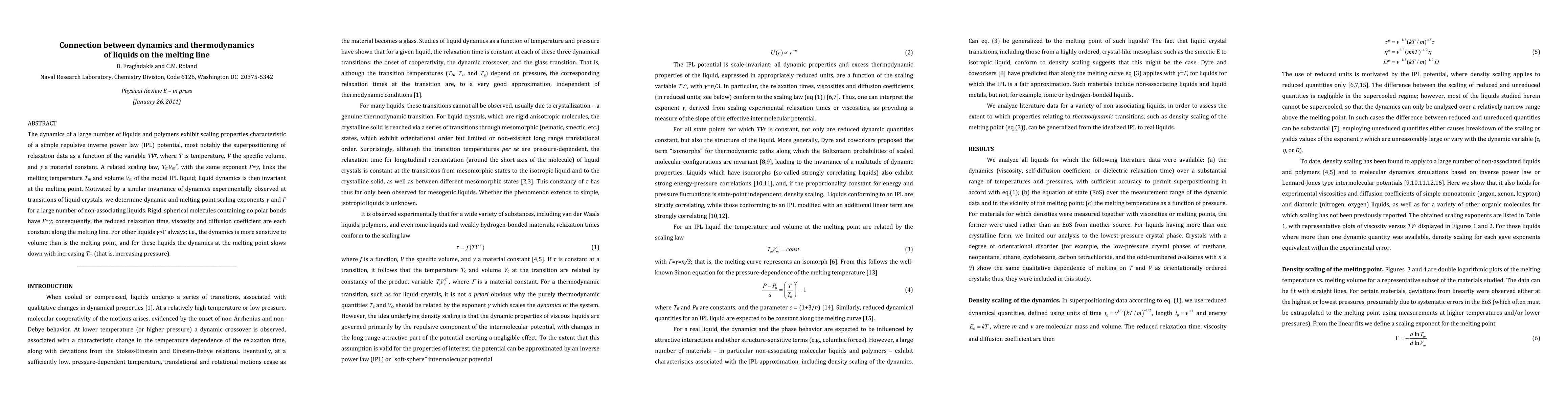 The dynamics of a large number of liquids and polymers exhibit scaling properties characteristic of a simple repulsive inverse power law (IPL) potential, most notably the superpositioning of relaxation data as a function of the variable TV{\gamma}, where T is temperature, V the specific volume, and {\gamma} a material constant. A related scaling law, TmVm{\Gamma}, with the same exponent {\Gamma}={\gamma}, links the melting temperature Tm and volume Vm of the model IPL liquid; liquid dynamics is then invariant at the melting point. Motivated by a similar invariance of dynamics experimentally observed at transitions of liquid crystals, we determine dynamic and melting point scaling exponents {\gamma} and {\Gamma} for a large number of non-associating liquids. Rigid, spherical molecules containing no polar bonds have {\Gamma}={\gamma}; consequently, the reduced relaxation time, viscosity and diffusion coefficient are each constant along the melting line. For other liquids {\gamma}>{\Gamma} always; i.e., the dynamics is more sensitive to volume than is the melting point, and for these liquids the dynamics at the melting point slows down with increasing Tm (that is, increasing pressure).