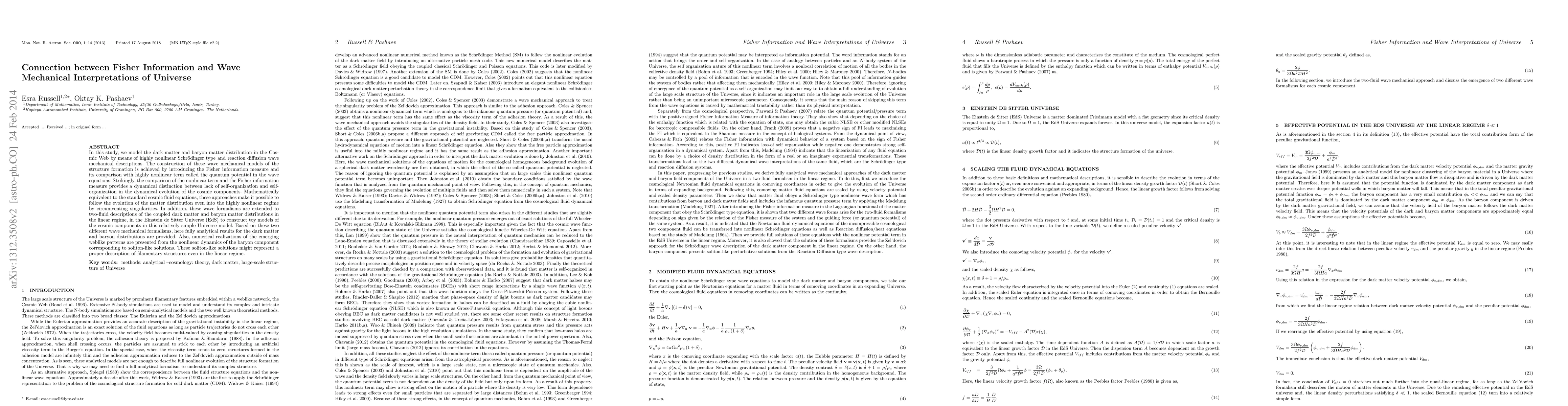 Researchers developed wave mechanical models to describe dark matter and baryon distribution in the Cosmic Web, using Fisher information and quantum potential to analyze self-organization and structure formation.