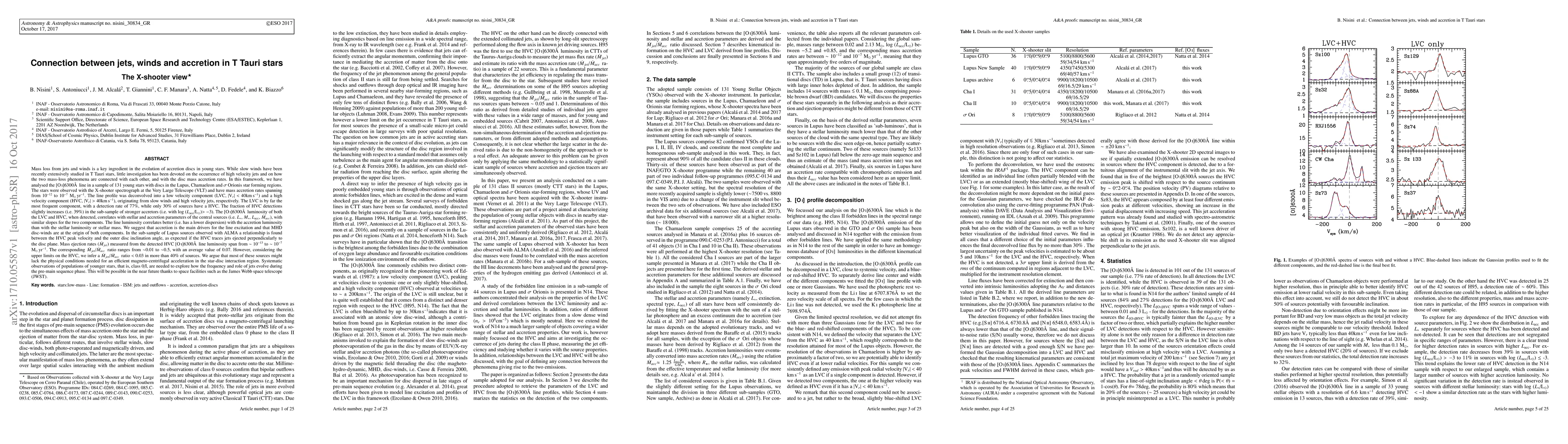 This study investigates the [OI]6300 Å line in 131 young stars with discs, revealing that low velocity components (LVC) are more common than high velocity components (HVC), which are linked to jets. Both components correlate with accretion parameters, suggesting accretion drives the line excitation, with HVCs potentially tracing perpendicular jets.