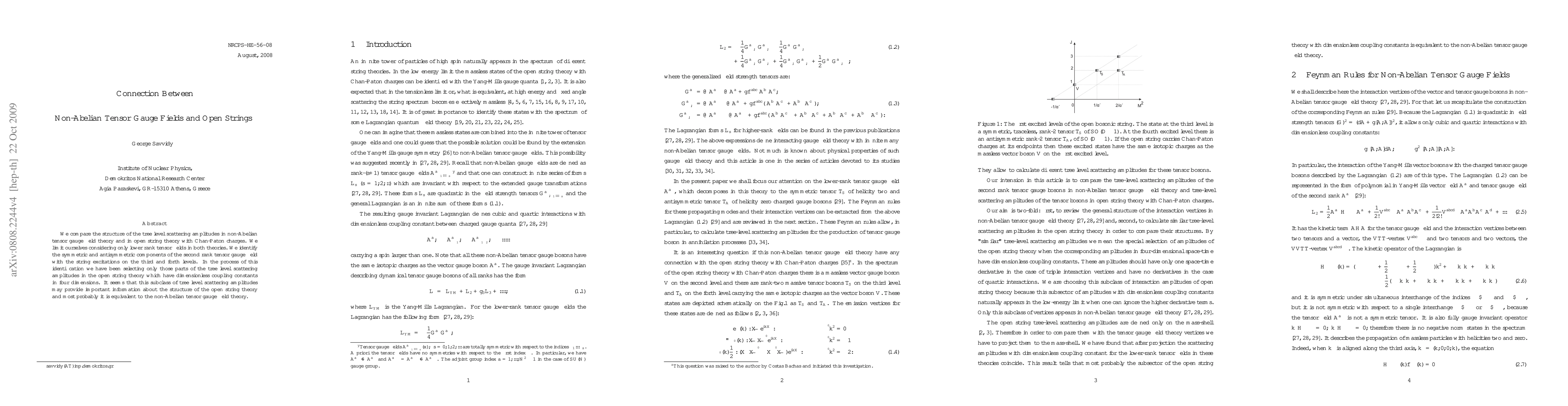We compare the structure of the tree level scattering amplitudes in non-Abelian tensor gauge field theory and in open string theory with Chan-Paton charges. We limit ourselves considering only lower rank tensor fields in both theories. We identify the symmetric and antisymmetric components of the second rank tensor gauge field with the string excitations on the third and forth levels. In the process of this identification we have been selecting only those parts of the tree level scattering amplitudes in the open string theory which have dimensionless coupling constants in four dimensions. It seems that this subclass of tree level scattering amplitudes may provide important information about the structure of the open string theory and most probably it is equivalent to the non-Abelian tensor gauge field theory.