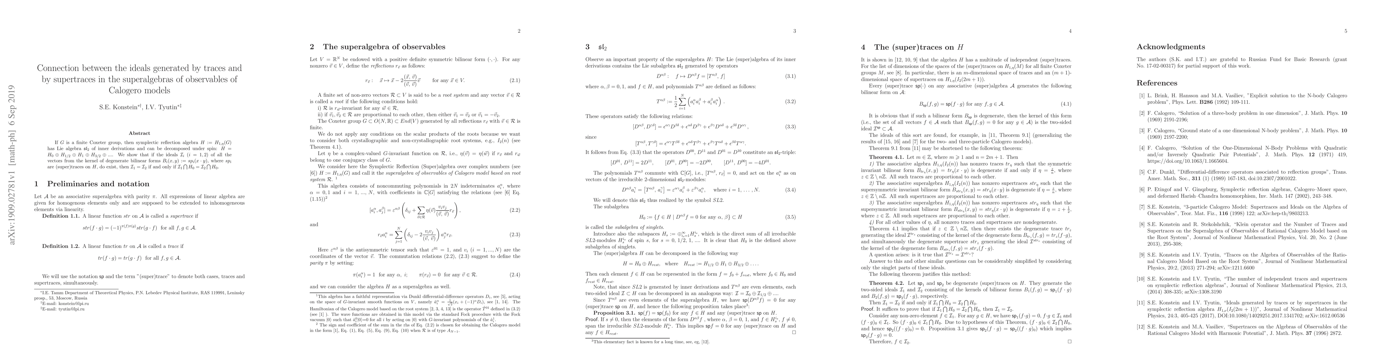 If $G$ is a finite Coxeter group, then symplectic reflection algebra $H:=H_{1,\eta}(G)$ has Lie algebra $\mathfrak {sl}_2$ of inner derivations and can be decomposed under spin: $H=H_0 \oplus H_{1/2} \oplus H_{1} \oplus H_{3/2} \oplus ...$. We show that if the ideals $\mathcal I_i$ ($i=1,2$) of all the vectors from the kernel of degenerate bilinear forms $B_i(x,y):=sp_i(x\cdot y)$, where $sp_i$ are (super)traces on $H$, do exist, then $\mathcal I_1=\mathcal I_2$ if and only if $\mathcal I_1 \bigcap H_0=\mathcal I_2 \bigcap H_0$.