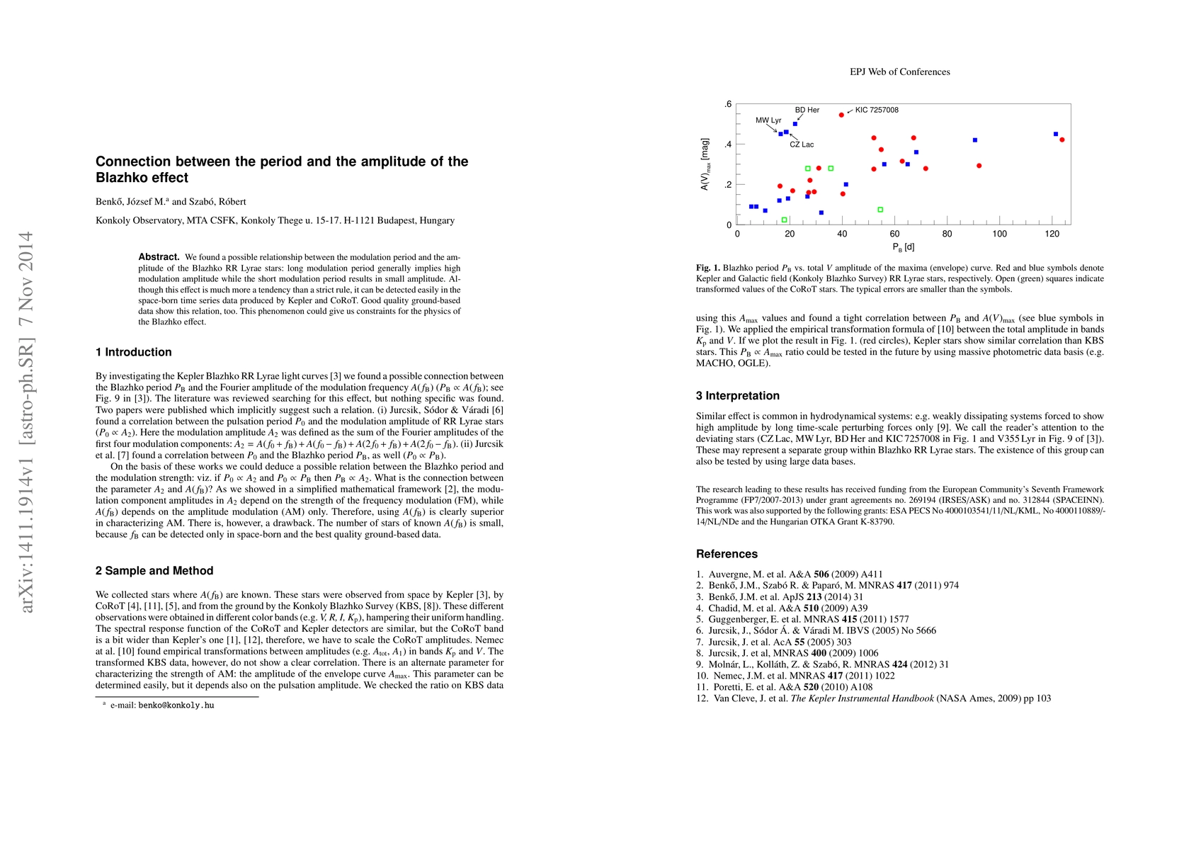We found a possible relationship between the modulation period and the amplitude of the Blazhko RR Lyrae stars: long modulation period generally implies high modulation amplitude while the short modulation period results in small amplitude. Although this effect is much more a tendency than a strict rule, it can be detected easily in the space-born time series data produced by Kepler and CoRoT. Good quality ground-based data show this relation, too. This phenomenon could give us constraints for the physics of the Blazhko effect.