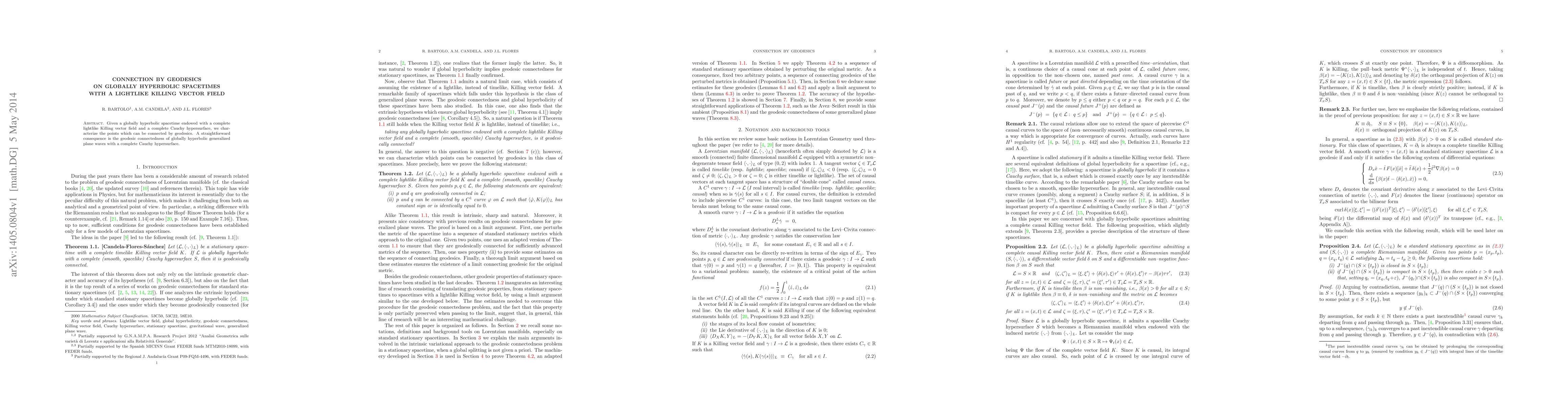 Given a globally hyperbolic spacetime endowed with a complete lightlike Killing vector field and a complete Cauchy hypersurface, we characterize the points which can be connected by geodesics. A straightforward consequence is the geodesic connectedness of globally hyperbolic generalized plane waves with a complete Cauchy hypersurface.