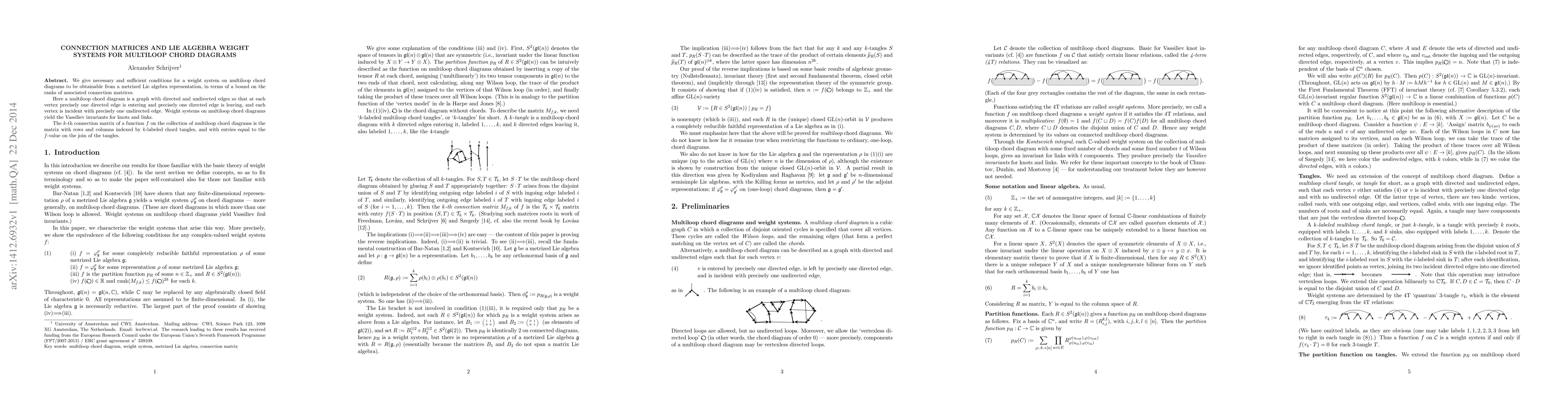 We give necessary and sufficient conditions for a weight system on multiloop chord diagrams to be obtainable from a metrized Lie algebra representation, in terms of a bound on the ranks of associated connection matrices. Here a multiloop chord diagram is a graph with directed and undirected edges so that at each vertex precisely one directed edge is entering and precisely one directed edge is leaving, and each vertex is incident with precisely one undirected edge. Weight systems on multiloop chord diagrams yield the Vassiliev invariants for knots and links. The $k$-th connection matrix of a function $f$ on the collection of multiloop chord diagrams is the matrix with rows and columns indexed by $k$-labeled chord tangles, and with entries equal to the $f$-value on the join of the tangles.