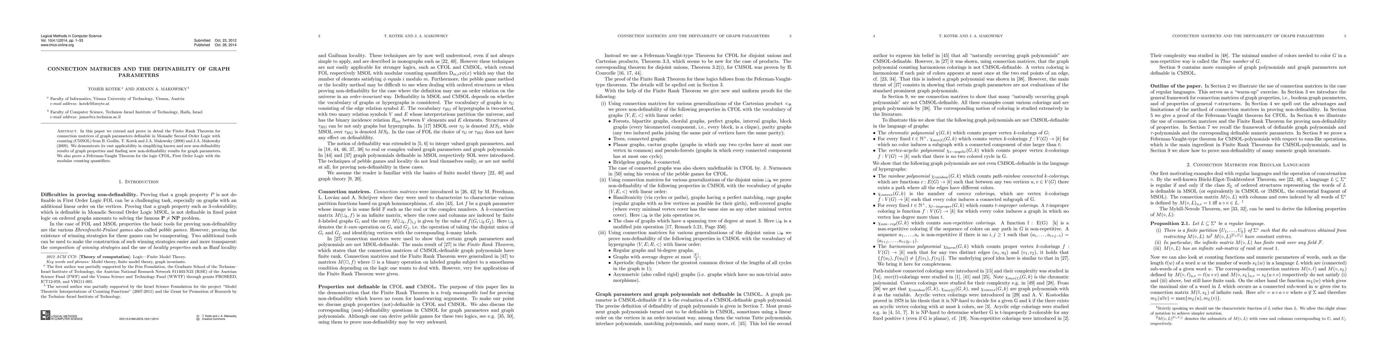 In this paper we extend and prove in detail the Finite Rank Theorem for connection matrices of graph parameters definable in Monadic Second Order Logic with counting (CMSOL) from B. Godlin, T. Kotek and J.A. Makowsky (2008) and J.A. Makowsky (2009). We demonstrate its vast applicability in simplifying known and new non-definability results of graph properties and finding new non-definability results for graph parameters. We also prove a Feferman-Vaught Theorem for the logic CFOL, First Order Logic with the modular counting quantifiers.