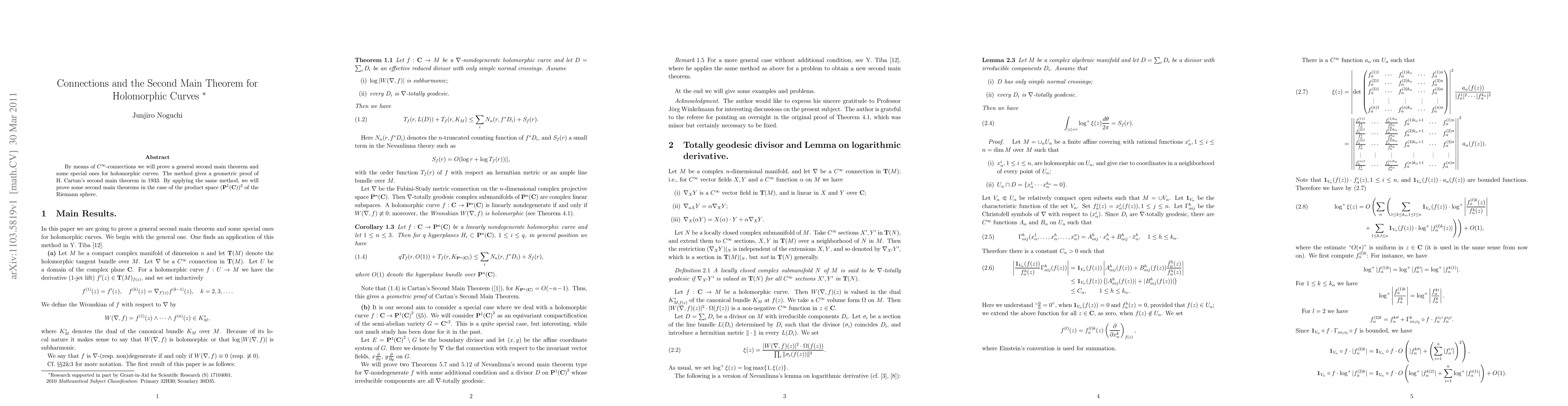 This paper proves a general second main theorem for holomorphic curves using $C^\infty$-connections, providing a geometric proof of H. Cartan's 1933 theorem and extending it to the product space $(\pone)^2$ of the Riemann sphere.