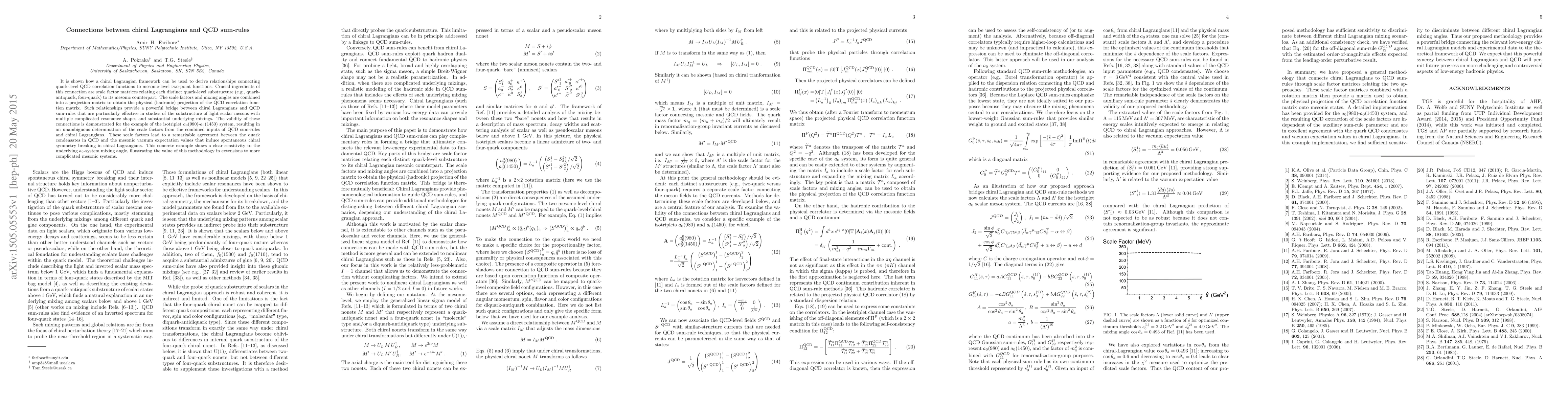 Researchers used chiral Lagrangians to connect quark-level QCD correlation functions to mesonic two-point functions, providing a bridge between theoretical models and experimental results for the substructure of light scalar mesons.