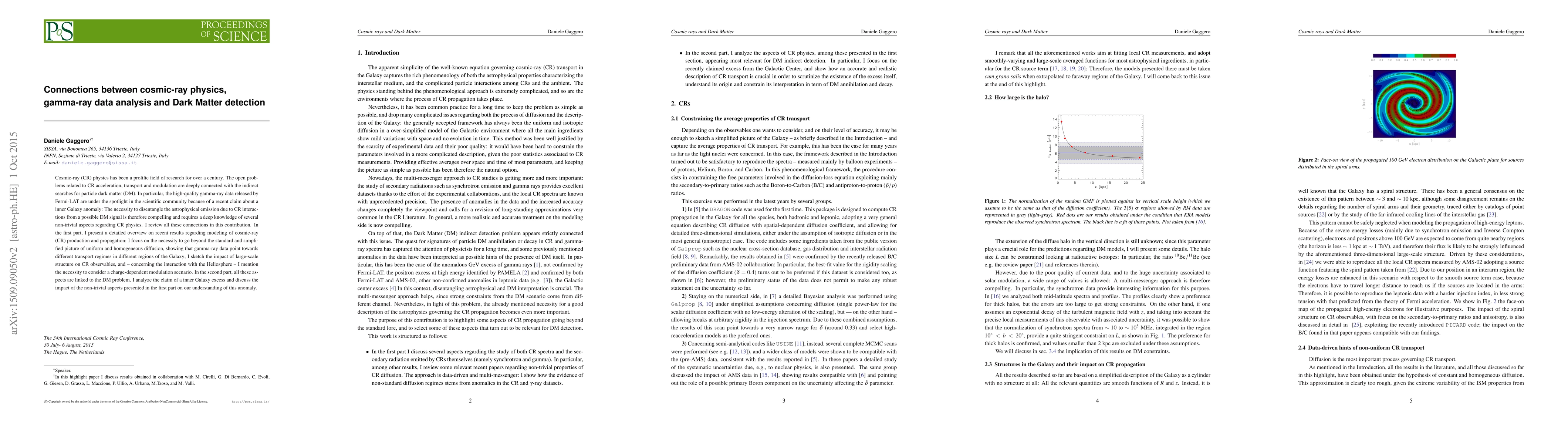 This paper explores connections between cosmic-ray physics, gamma-ray data analysis, and dark matter detection, highlighting key findings on CR production, transport, and modulation to better understand a recent galaxy anomaly, and their implications for DM research.