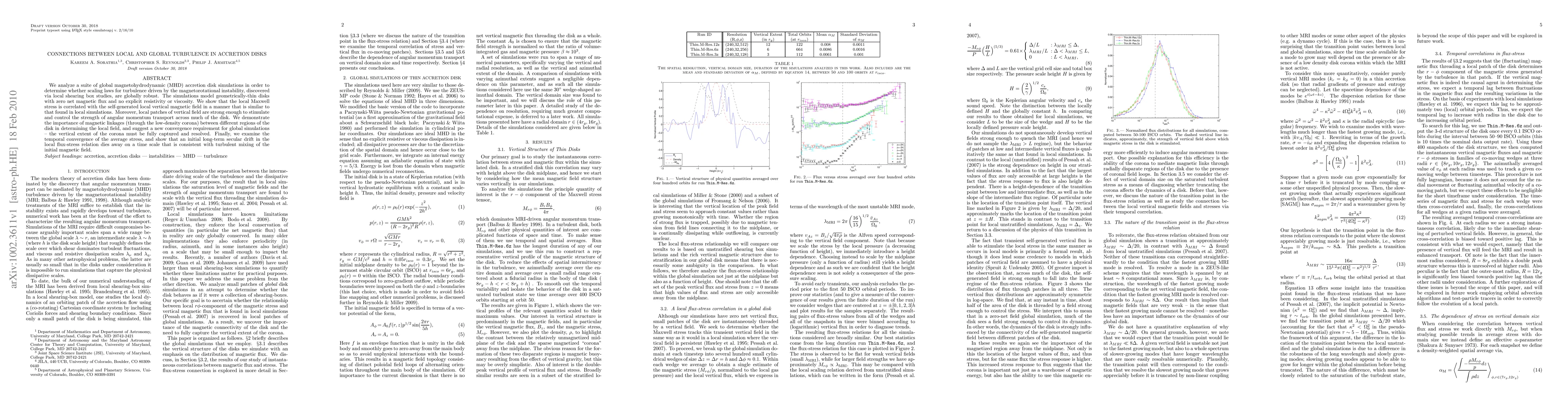 This study investigates global magnetohydrodynamic simulations of accretion disks to determine if local turbulence scaling laws from shearing box studies apply globally. It finds that local vertical magnetic fields, generated by the magnetorotational instability, control angular momentum transport and emphasizes the importance of magnetic linkages in the corona for accurate global simulations.
